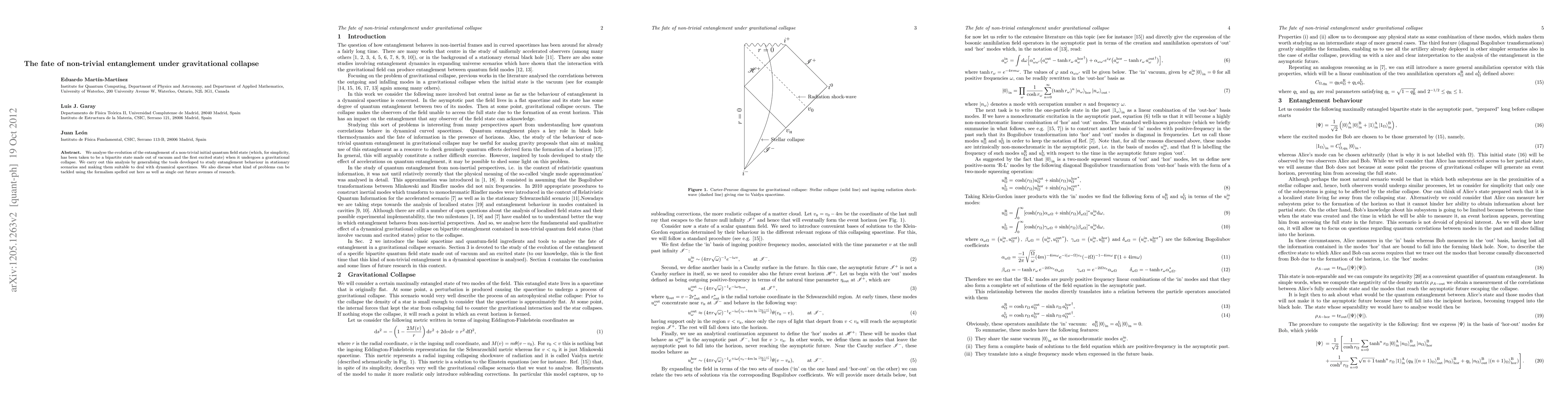 Researchers studied how entanglement in a quantum system behaves during gravitational collapse, developing new methods to analyze its evolution. Their work has implications for understanding the fate of non-trivial entanglement in extreme gravitational environments.