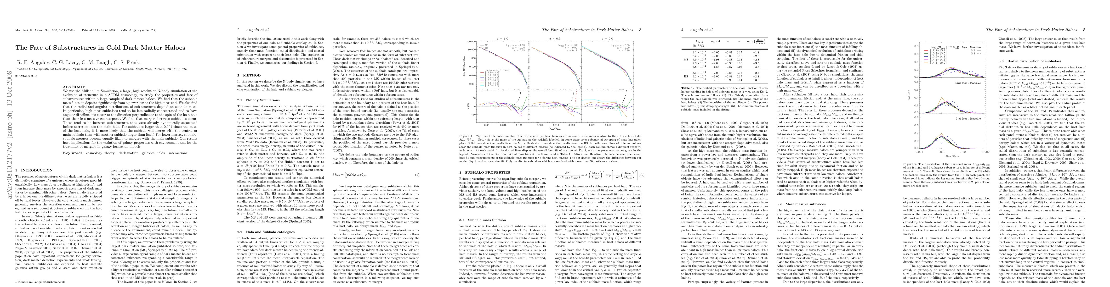 We use the Millennium Simulation, a large, high resolution N-body simulation of the evolution of structure in a LambdaCDM cosmology, to study the properties and fate of substructures within a large sample of dark matter haloes. We find that the subhalo mass function departs significantly from a power law at the high mass end. We also find that the radial and angular distributions of substructures depend on subhalo mass. In particular, high mass subhaloes tend to be less radially concentrated and to have angular distributions closer to the direction perpendicular to the spin of the host halo than their less massive counterparts. We find that mergers between subhaloes occur. These tend to be between substructures that were already dynamically associated before accretion into the main halo. For subhaloes larger than 0.001 times the mass of the host halo, it is more likely that the subhalo will merge with the central or main subhalo than with another subhalo larger than itself. For lower masses, subhalo-subhalo mergers become equally likely to mergers with the main subhalo. Our results have implications for the variation of galaxy properties with environment and for the treatment of mergers in galaxy formation models.