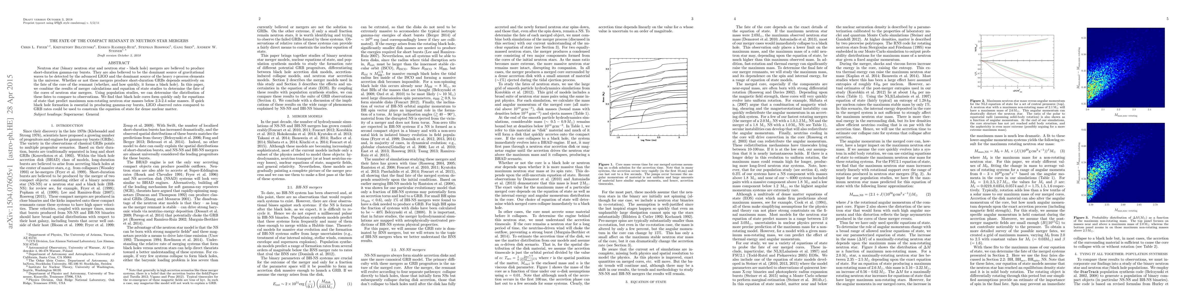 Neutron star (binary neutron star and neutron star - black hole) mergers are believed to produce short-duration gamma-ray bursts. They are also believed to be the dominant source of gravitational waves to be detected by the advanced LIGO and the dominant source of the heavy r-process elements in the universe. Whether or not these mergers produce short-duration GRBs depends sensitively on the fate of the core of the remnant (whether, and how quickly, it forms a black hole). In this paper, we combine the results of merger calculations and equation of state studies to determine the fate of the cores of neutron star mergers. Using population studies, we can determine the distribution of these fates to compare to observations. We find that black hole cores form quickly only for equations of state that predict maximum non-rotating neutron star masses below 2.3-2.4 solar masses. If quick black hole formation is essential in producing gamma-ray bursts, LIGO observed rates compared to GRB rates could be used to constrain the equation of state for dense nuclear matter.