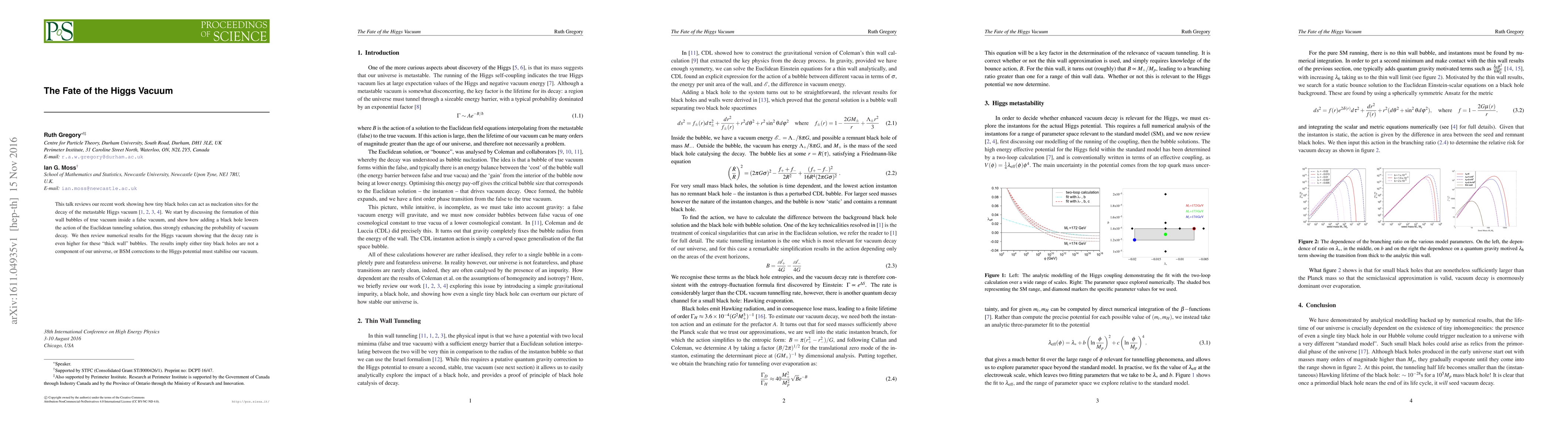 This talk reviews our recent work showing how tiny black holes can act as nucleation sites for the decay of the metastable Higgs vacuum. We start by discussing the formation of thin wall bubbles of true vacuum inside a false vacuum, and show how adding a black hole lowers the action of the Euclidean tunneling solution, thus strongly enhancing the probability of vacuum decay. We then review numerical results for the Higgs vacuum showing that the decay rate is even higher for these "thick wall" bubbles. The results imply either tiny black holes are not a component of our universe, or BSM corrections to the Higgs potential must stabilise our vacuum.