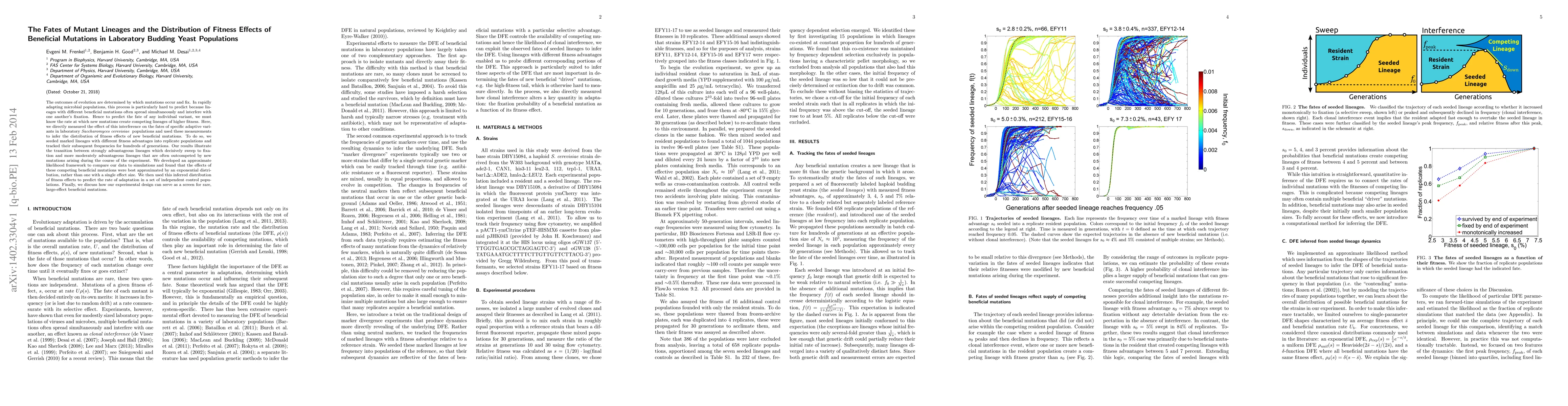 The outcomes of evolution are determined by which mutations occur and fix. In rapidly adapting microbial populations, this process is particularly hard to predict because lineages with different beneficial mutations often spread simultaneously and interfere with one another's fixation. Hence to predict the fate of any individual variant, we must know the rate at which new mutations create competing lineages of higher fitness. Here, we directly measured the effect of this interference on the fates of specific adaptive variants in laboratory Saccharomyces cerevisiae populations and used these measurements to infer the distribution of fitness effects of new beneficial mutations. To do so, we seeded marked lineages with different fitness advantages into replicate populations and tracked their subsequent frequencies for hundreds of generations. Our results illustrate the transition between strongly advantageous lineages which decisively sweep to fixation and more moderately advantageous lineages that are often outcompeted by new mutations arising during the course of the experiment. We developed an approximate likelihood framework to compare our data to simulations and found that the effects of these competing beneficial mutations were best approximated by an exponential distribution, rather than one with a single effect size. We then used this inferred distribution of fitness effects to predict the rate of adaptation in a set of independent control populations. Finally, we discuss how our experimental design can serve as a screen for rare, large-effect beneficial mutations.