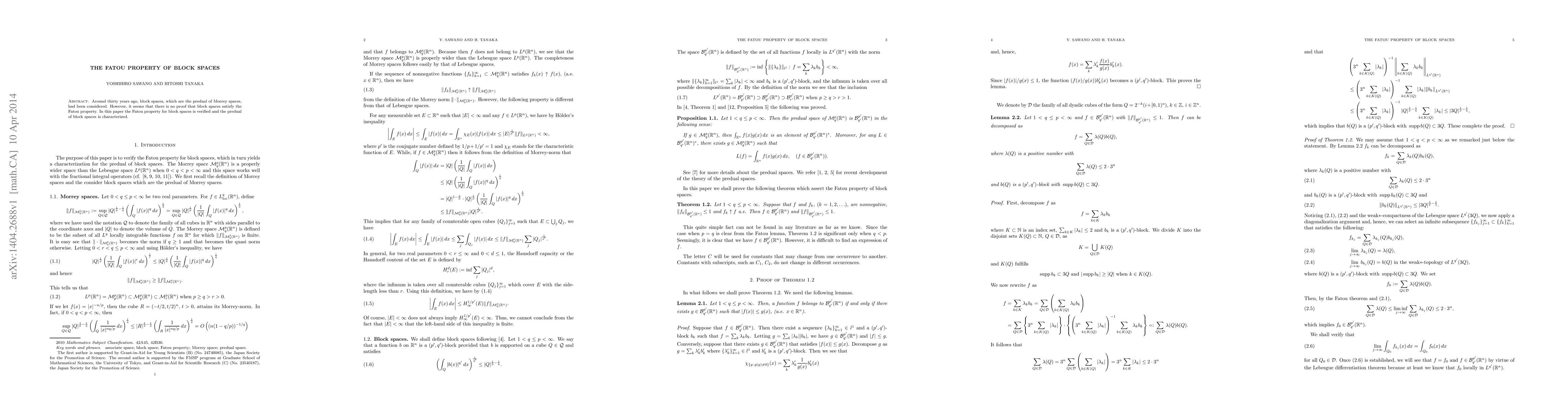 This paper confirms that block spaces, predual of Morrey spaces, possess the Fatou property, thus verifying a long-standing gap in previous research and characterizing their predual.