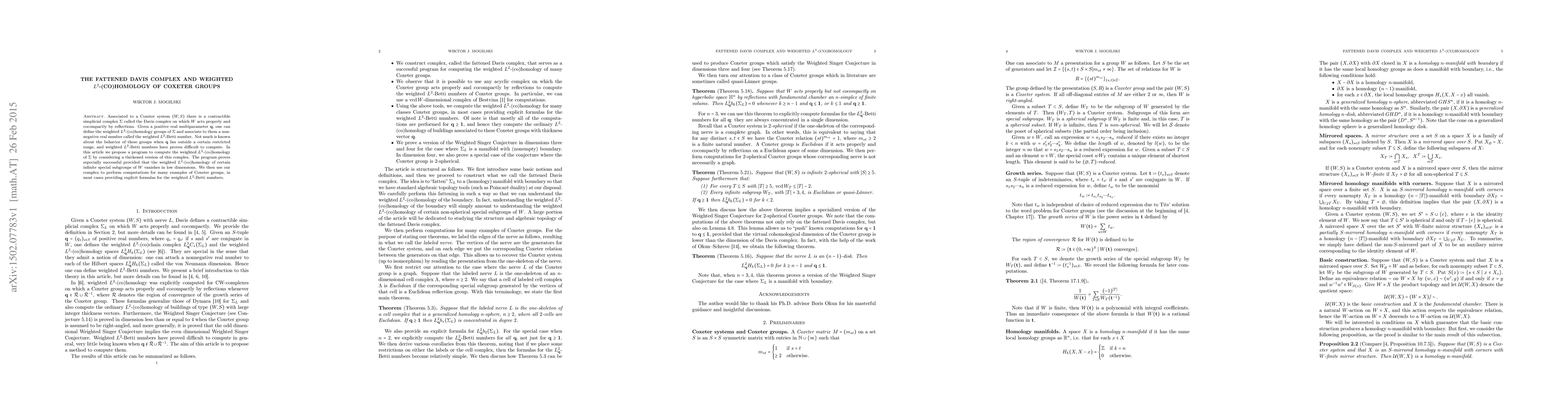 This paper introduces a method to compute the weighted $L^2$-(co)homology of the Davis complex associated with Coxeter groups by utilizing a fattened version of the complex. The approach works effectively when certain special subgroups' $L^2$-(co)homology vanishes in low dimensions, providing explicit formulas for weighted $L^2$-Betti numbers in various Coxeter group examples.