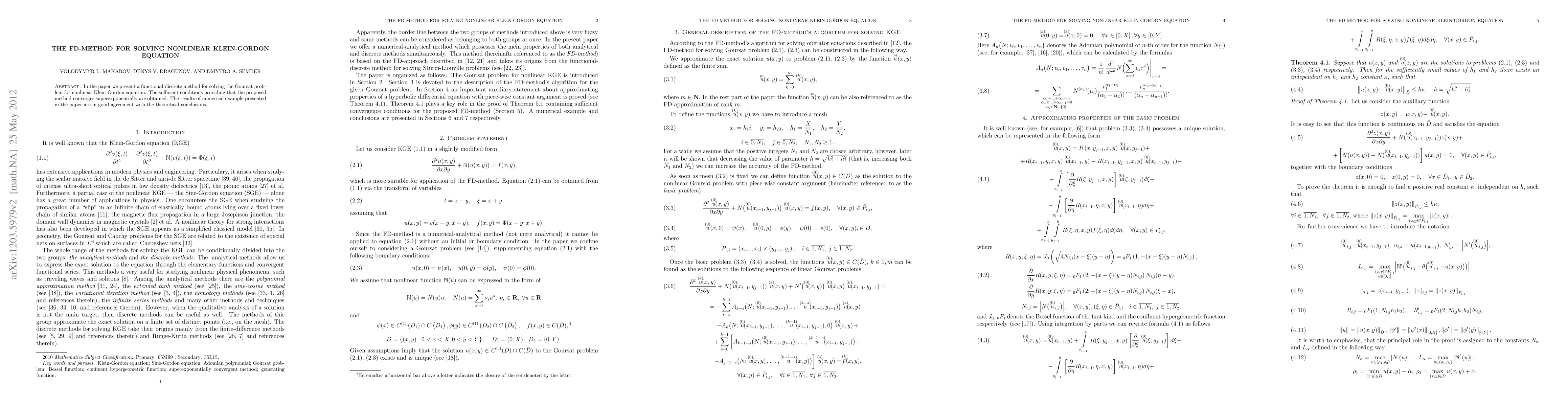 This paper introduces a functional-discrete method for solving nonlinear Klein-Gordon equations, with results showing good agreement between numerical examples and theoretical conclusions.