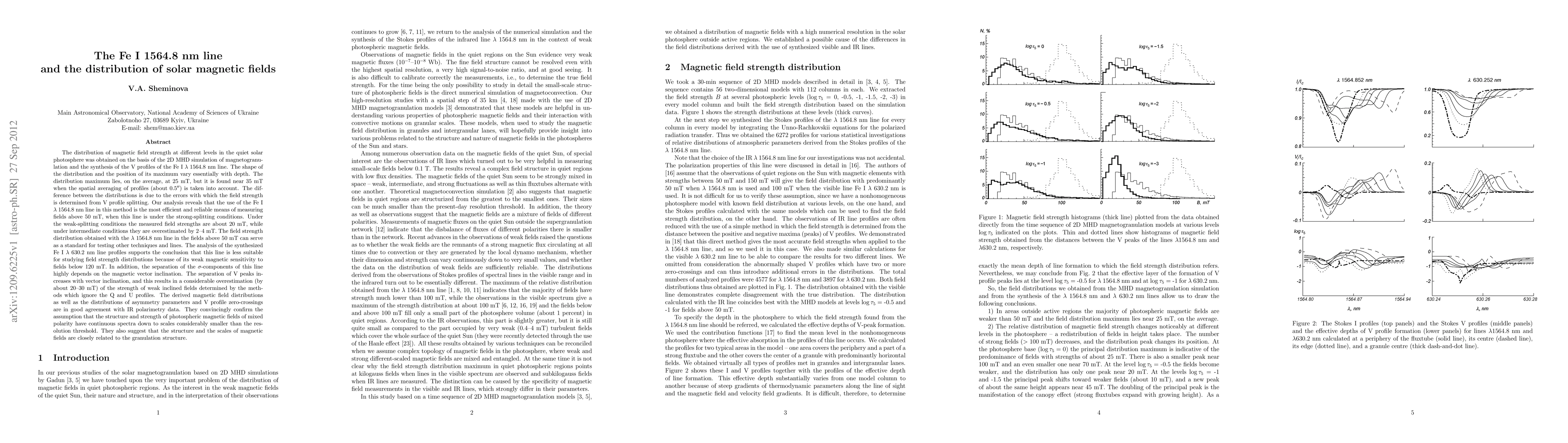 The distribution of magnetic field strength at different levels in the solar photosphere outside active regions was obtained on the basis of the 2D MHD simulation of magnetogranulation and the synthesis of the V profiles of the Fe I 1564.8 nm line. The shape of the distribution varies essentially with depth in the photosphere. The distribution maximum lies about at 25 mT, but it is found near 35 mT when the spatial averaging of profiles (about 0.5") is taken into account. Our analysis reveals that the use of the Fe I 1564.8 nm line for determination of field strength from V profile splitting is the most efficient and reliable means of measuring fields above 50 mT. The field strength distribution obtained with the 1564.8 nm line in the fields above 50 mT can serve as a standard for testing other techniques and spectral lines. The analysis of the synthesized Fe I 630.2 nm line profiles supports the conclusion that this line is less suitable for studying field strength distributions because of its weak magnetic sensitivity to fields below 120 mT. The derived magnetic field distributions as well as the distributions of asymmetry parameters and V profile zero-crossings are in good agreement with IR polarimetry data. They convincingly confirm the assumption that the structure and strength of photospheric magnetic fields of mixed polarity have continuous spectra down to scales considerably smaller than the resolution threshold. They also suggest that the structure and the scales of magnetic fields are closely related to the granulation structure.