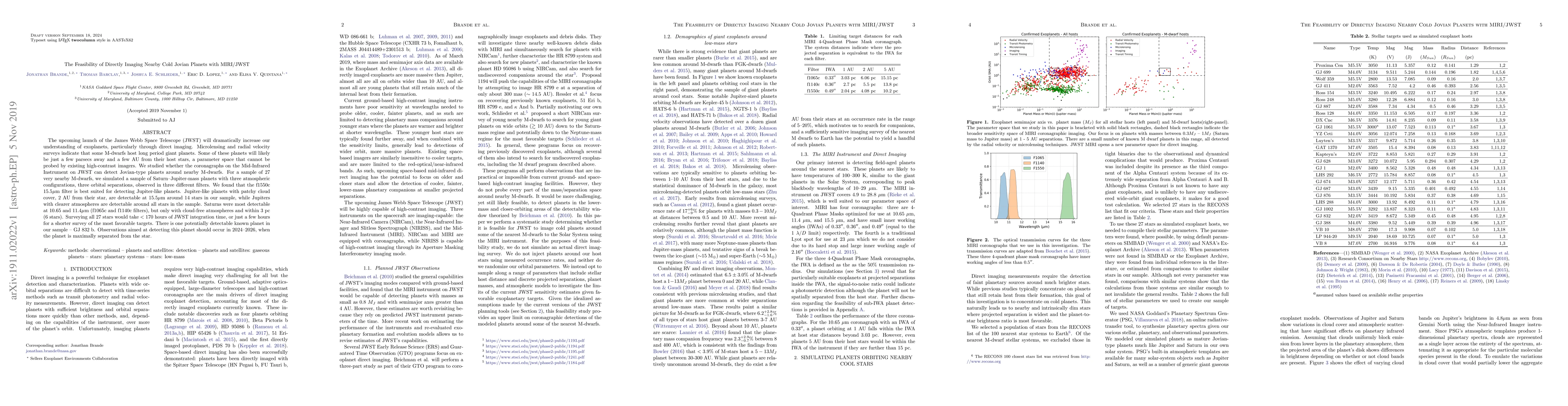 The James Webb Space Telescope can detect Jovian-type planets around nearby M-dwarfs, with Jupiter-like planets most easily visible in the 15.5-microgram filter.