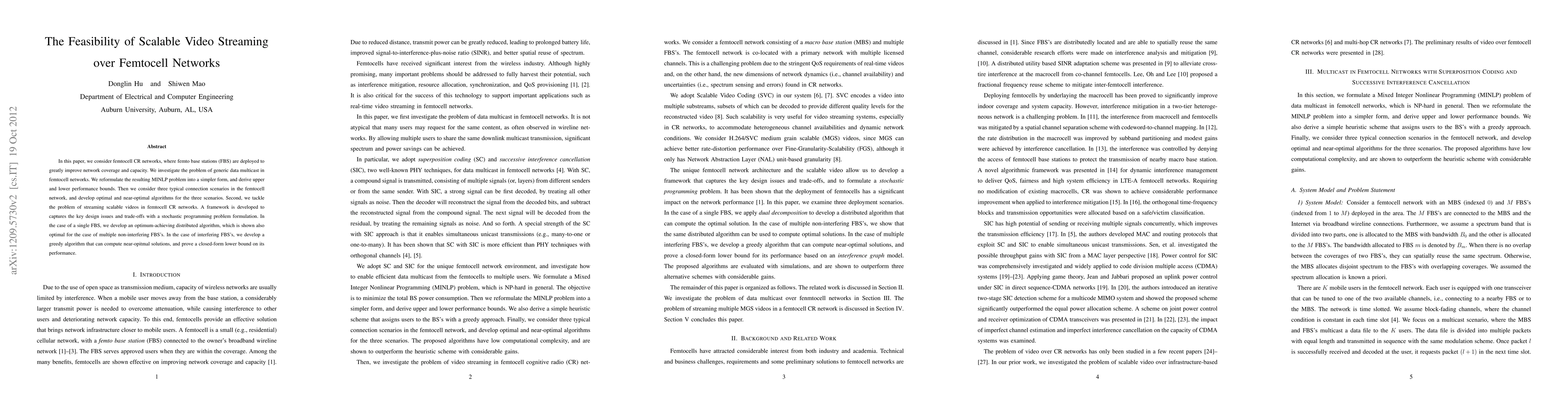 In this paper, we consider femtocell CR networks, where femto base stations (FBS) are deployed to greatly improve network coverage and capacity. We investigate the problem of generic data multicast in femtocell networks. We reformulate the resulting MINLP problem into a simpler form, and derive upper and lower performance bounds. Then we consider three typical connection scenarios in the femtocell network, and develop optimal and near-optimal algorithms for the three scenarios. Second, we tackle the problem of streaming scalable videos in femtocell CR networks. A framework is developed to captures the key design issues and trade-offs with a stochastic programming problem formulation. In the case of a single FBS, we develop an optimum-achieving distributed algorithm, which is shown also optimal for the case of multiple non-interfering FBS's. In the case of interfering FBS's, we develop a greedy algorithm that can compute near-opitmal solutions, and prove a closed-form lower bound on its performance.