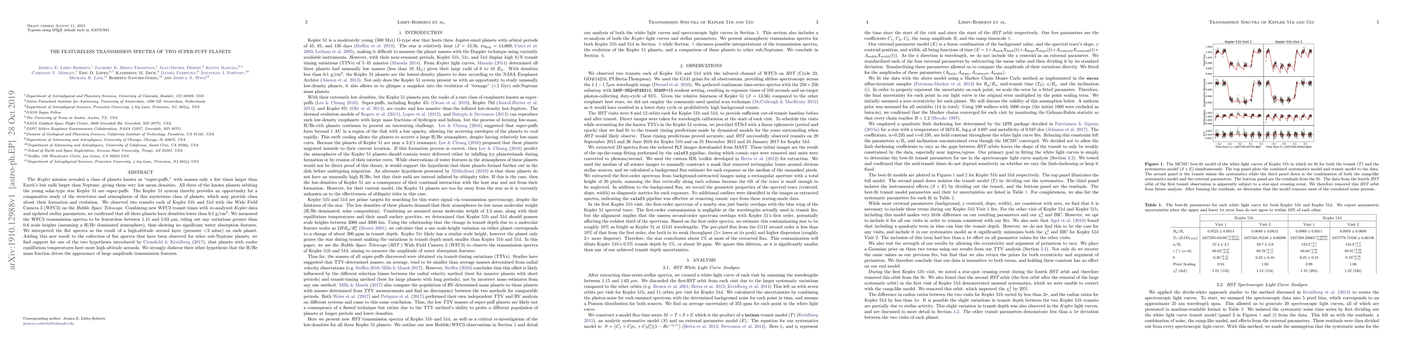 This study reveals the featureless transmission spectra of the super-puff planets Kepler 51b and 51d, indicating no significant water absorption features and suggesting a high-altitude aerosol layer. The findings support the hypothesis that cooler planets have more high-altitude aerosols, while refuting the idea that hydrogen/helium mass fraction influences spectral features.