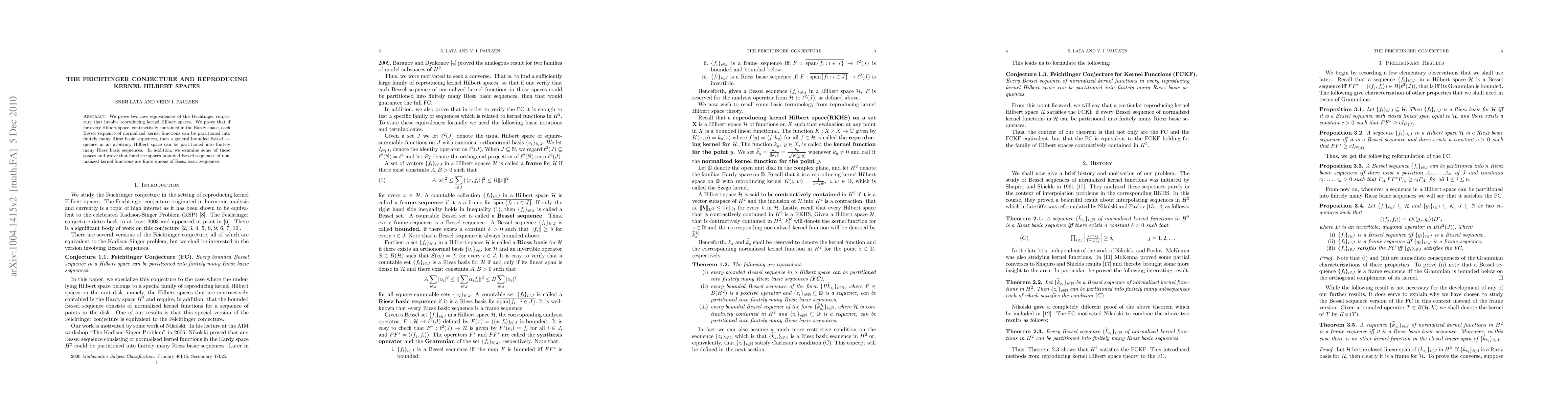 The paper proves new equivalences of the Feichtinger conjecture using reproducing kernel Hilbert spaces, showing that certain properties of Bessel sequences in Hardy spaces imply similar properties in general Hilbert spaces. It also demonstrates that bounded Bessel sequences in these spaces can be decomposed into finite unions of Riesz basic sequences.