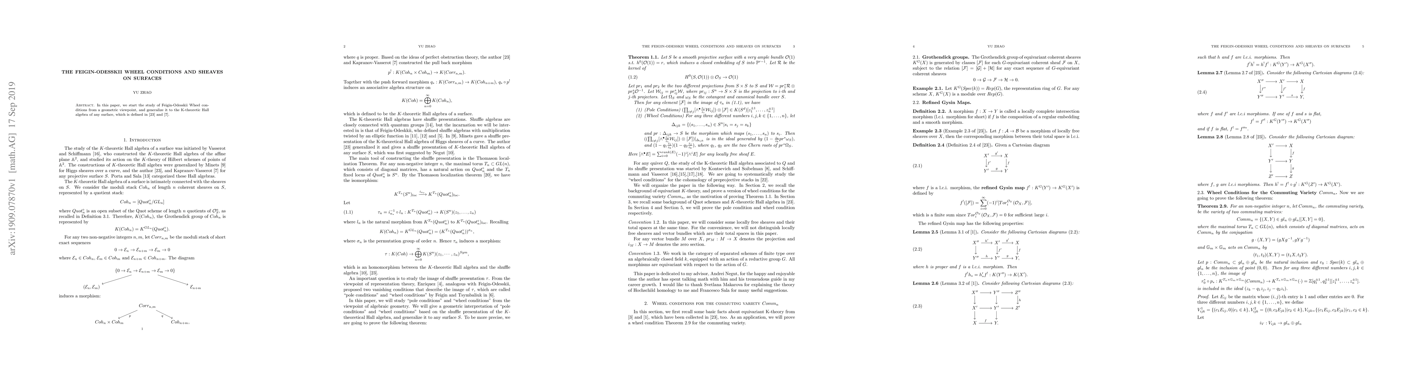 In this paper, we start the study of Feigin-Odesskii wheel conditions from a geometric viewpoint, and generalize it to the K-theory Hall algebra of any surface.