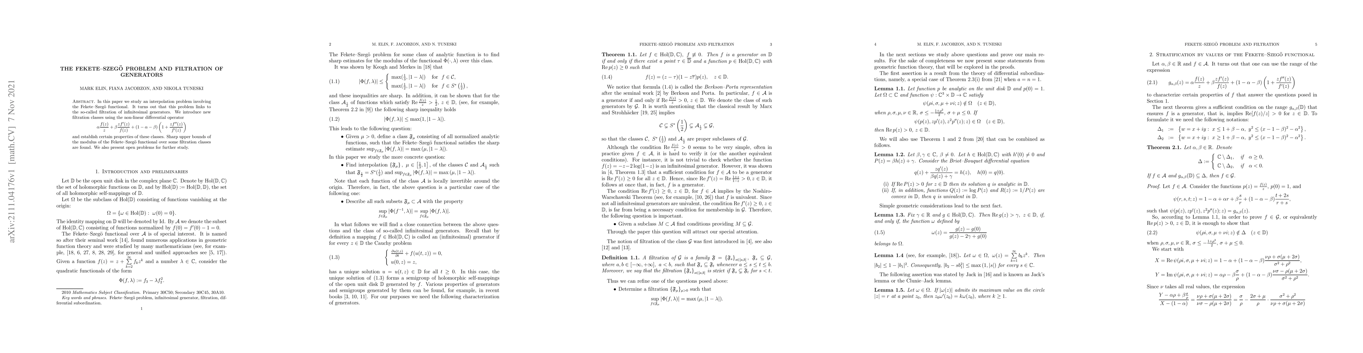 In this paper we study an interpolation problem involving the Fekete--Szeg\"{o} functional. It turns out that this problem links to the so-called filtration of infinitesimal generators. We introduce new filtration classes using the non-linear differential operator \[\alpha\frac{f(z)}{z}+\beta\frac{zf'(z)}{f(z)}+(1-\alpha-\beta)\left(1+\frac{zf''(z)}{f'(z)}\right)\] and establish certain properties of these classes. Sharp upper bounds of the modulus of the Fekete--Szeg\"{o} functional over some filtration classes are found. We also present open problems for further study.