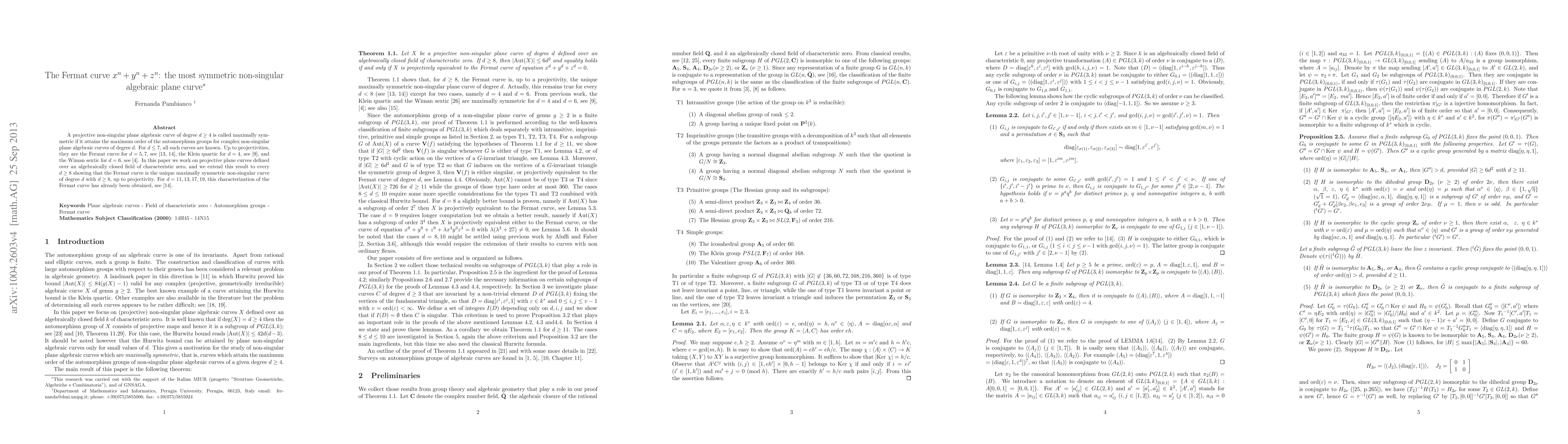This paper demonstrates that the Fermat curve is the unique maximally symmetric non-singular algebraic plane curve for degrees d >= 8, extending previous results for d <= 7. It confirms the Fermat curve's exceptional symmetry properties across a broader range of degrees.
