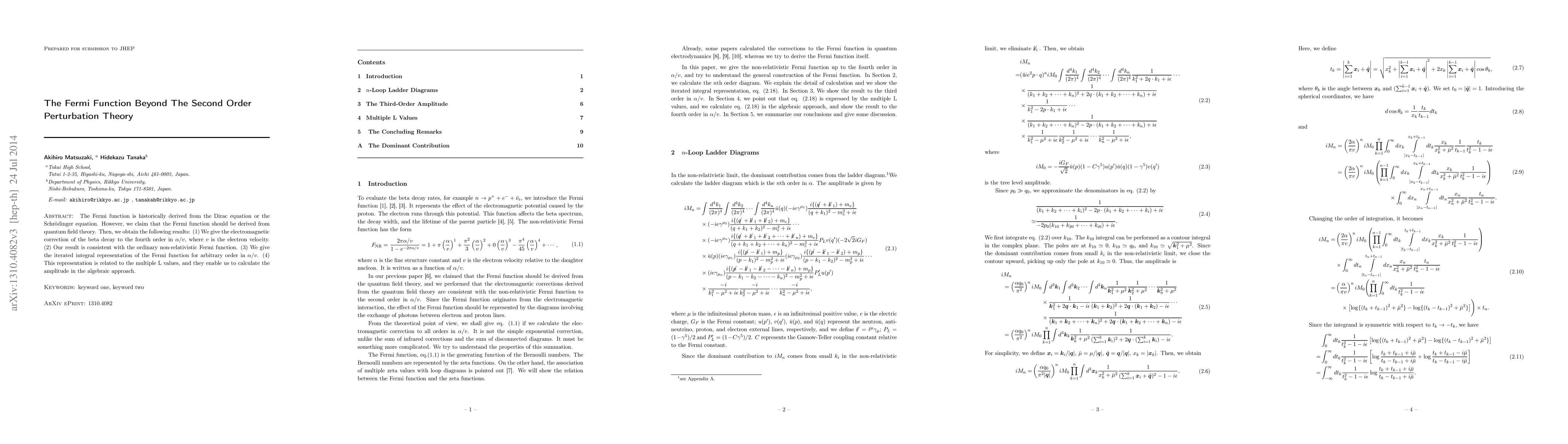 The Fermi function is historically derived from the Dirac equation or the Schr\"odinger equation. However, we claim that the Fermi function should be derived from quantum field theory. Then, we obtain the following results: (1) We give the electromagnetic correction of the beta decay to the fourth order in $\alpha/v$, where $v$ is the electron velocity. (2) Our result is consistent with the ordinary non-relativistic Fermi function. (3) We give the iterated integral representation of the Fermi function for arbitrary order in $\alpha/v$. (4) This representation is related to the multiple L values, and they enable us to calculate the amplitude in the algebraic approach.