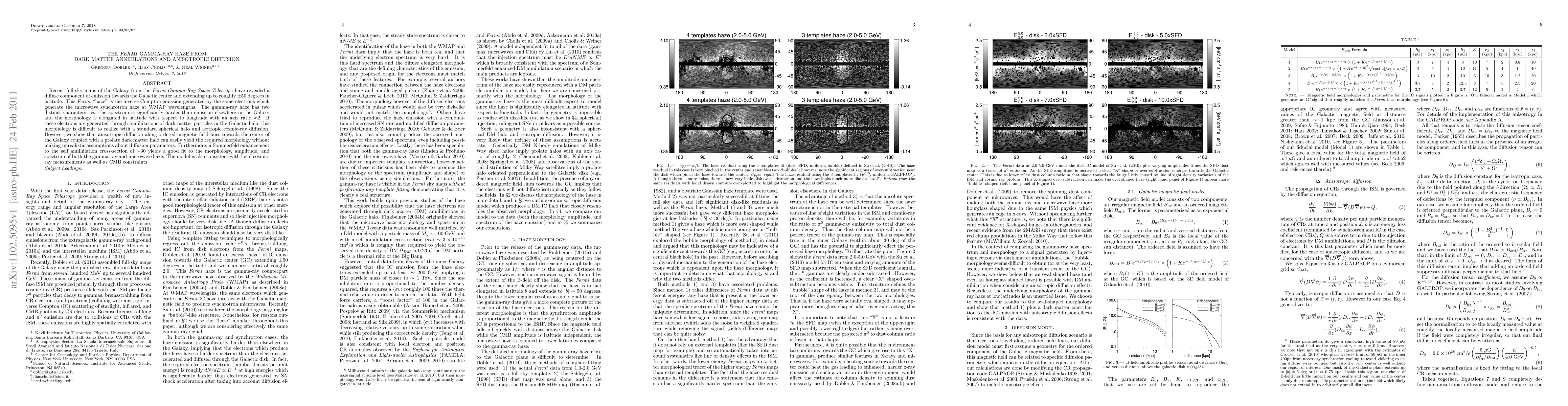The Fermi Gamma-Ray Space Telescope has detected a diffuse gamma-ray haze emanating from the Galactic center and extending in latitude, characterized by a hard spectrum and elongated morphology. This haze can be explained by dark matter annihilations in a prolate halo with anisotropic diffusion along magnetic field lines, consistent with both microwave and CMB observations.