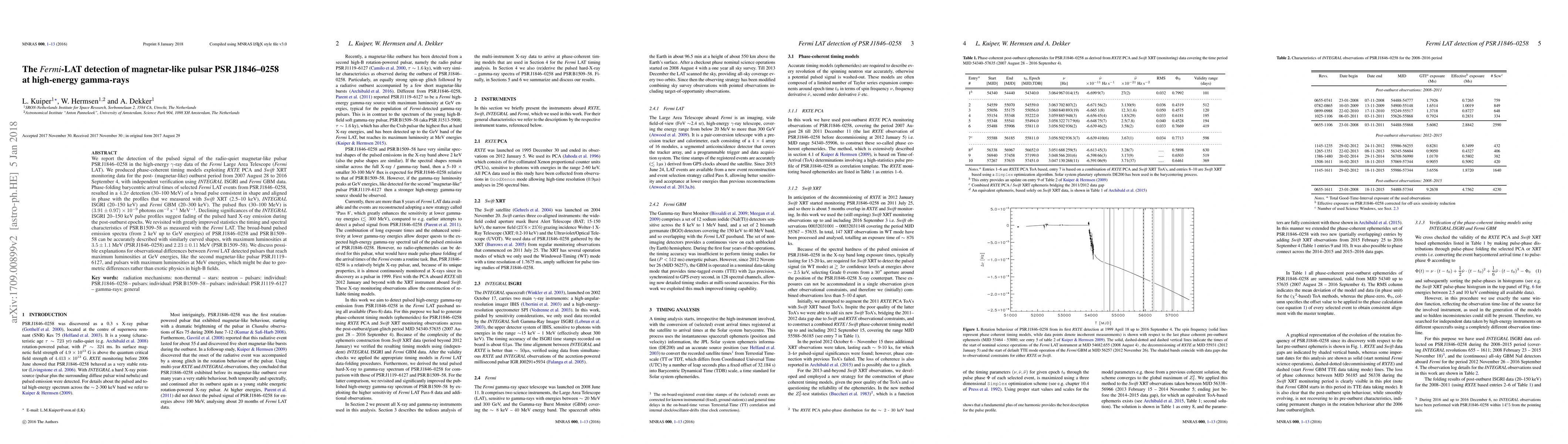 Researchers detect pulsar PSR J1846-0258 in high-energy gamma-rays using Fermi LAT data, confirming its magnetar-like behavior with a broad pulse consistent across multiple energy bands.