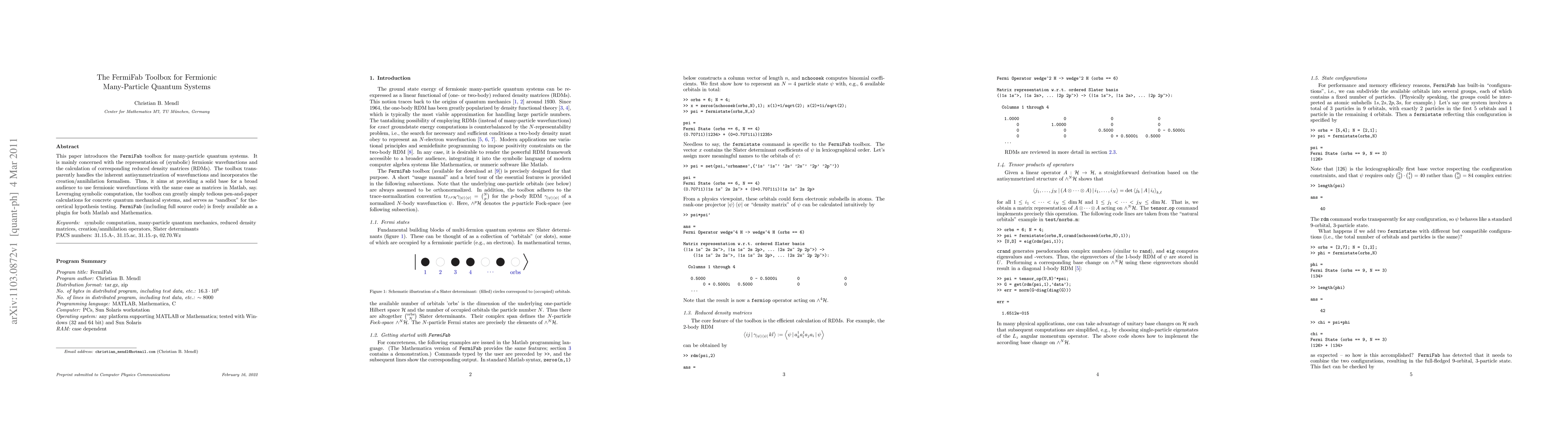 This paper introduces the FermiFab toolbox for many-particle quantum systems. It is mainly concerned with the representation of (symbolic) fermionic wavefunctions and the calculation of corresponding reduced density matrices (RDMs). The toolbox transparently handles the inherent antisymmetrization of wavefunctions and incorporates the creation/annihilation formalism. Thus, it aims at providing a solid base for a broad audience to use fermionic wavefunctions with the same ease as matrices in Matlab, say. Leveraging symbolic computation, the toolbox can greatly simply tedious pen-and-paper calculations for concrete quantum mechanical systems, and serves as "sandbox" for theoretical hypothesis testing. FermiFab (including full source code) is freely available as a plugin for both Matlab and Mathematica.