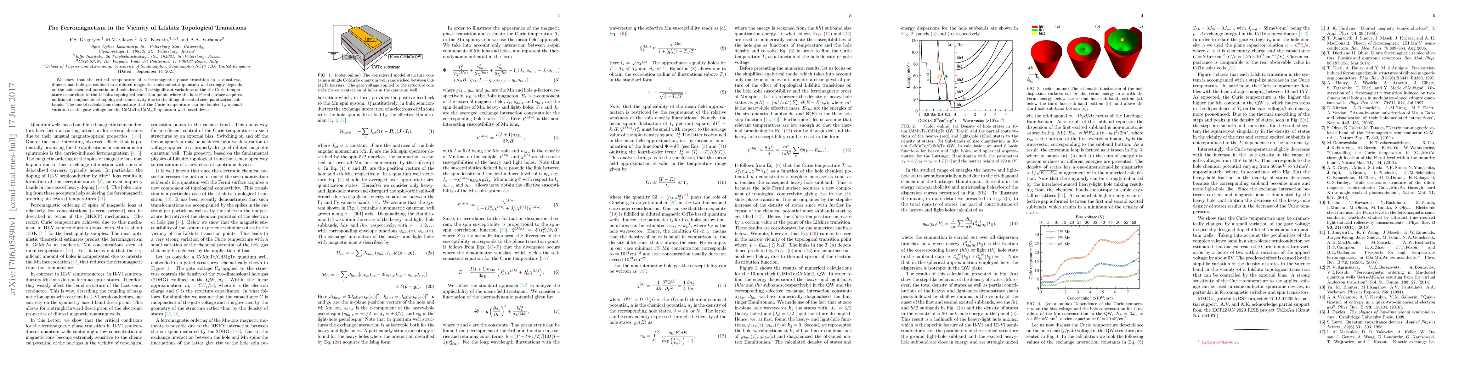 We show that the critical temperature of a ferromagnetic phase transition in a quasi-two-dimensional hole gas confined in a diluted magnetic semiconductor quantum well strongly depends on the hole chemical potential and hole density. The significant variations of the the Curie temperature occur close to the Lifshitz topological transition points where the hole Fermi surface acquires additional components of topological connectivity due to the filling of excited size-quantization subbands. The model calculations demonstrate that the Curie temperature can be doubled by a small variation of the gate voltage for the CdMnTe/CdMgTe quantum well based device.