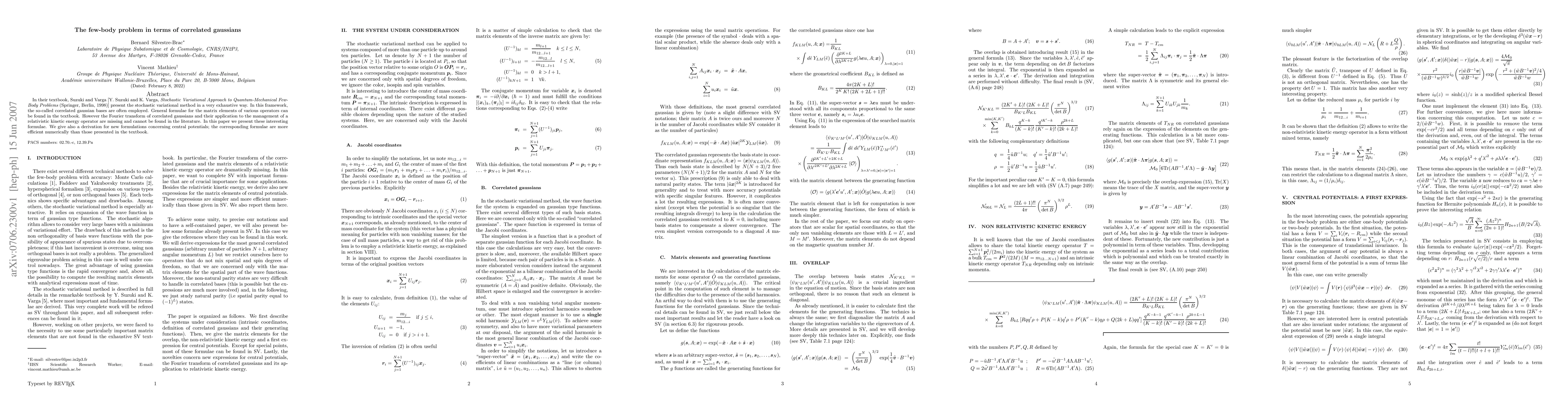 This paper extends the stochastic variational method by providing missing formulae for the Fourier transform of correlated Gaussians and their application to relativistic kinetic energy operators. It also introduces more numerically efficient formulations for central potentials compared to those in Suzuki and Varga's textbook.