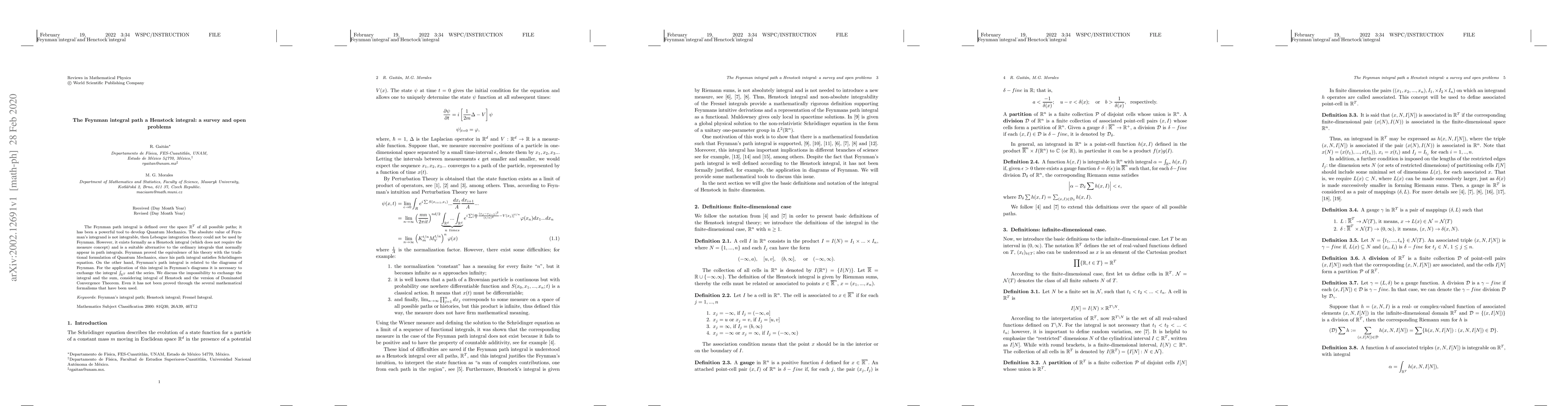 This paper surveys the Feynman path integral, which is defined as a Henstock integral to circumvent integrability issues, and its equivalence to traditional Quantum Mechanics. It discusses the challenges in exchanging the path integral with series in Feynman diagrams, highlighting the limitations of the Dominated Convergence Theorem in this context.