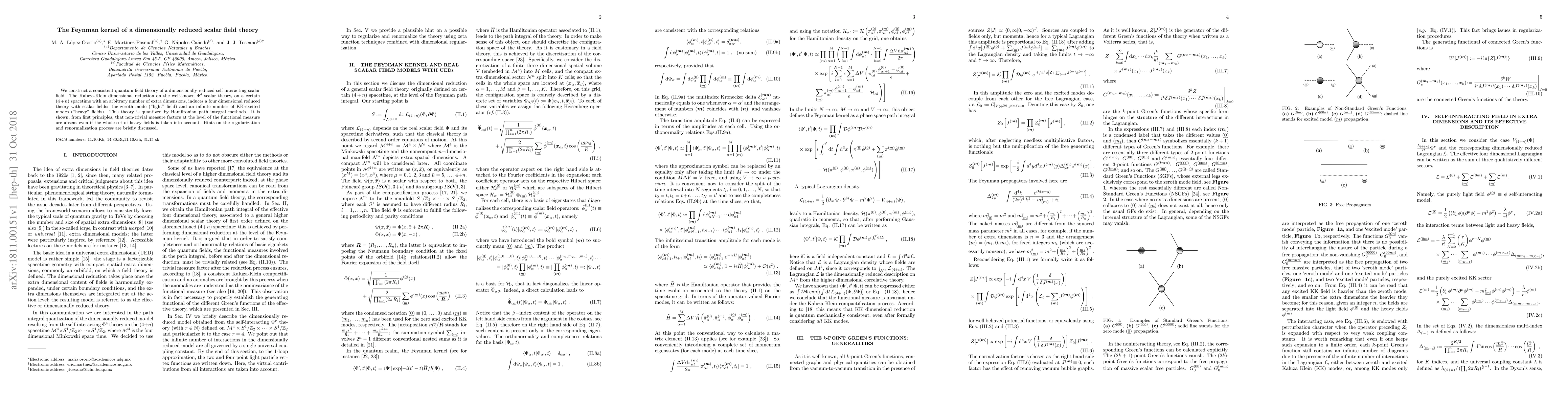 We construct a consistent quantum field theory of a dimensionally reduced self-interacting scalar field. The Kaluza-Klein dimensional reduction on the well-known $\Phi^{4}$ scalar theory, on a certain $(4+n)$ spacetime with an arbitrary number of extra dimensions, induces a four dimensional reduced theory with scalar fields: the zeroth mode (`light' field) and an infinite number of KK-excited modes (`heavy' fields). This theory is quantized by Hamiltonian path integral methods. It is shown, from first principles, that non-trivial measure factors at the level of the functional measure are absent even if the whole set of heavy fields is taken into account. Hints on the regularization and renormalization process are briefly discussed.