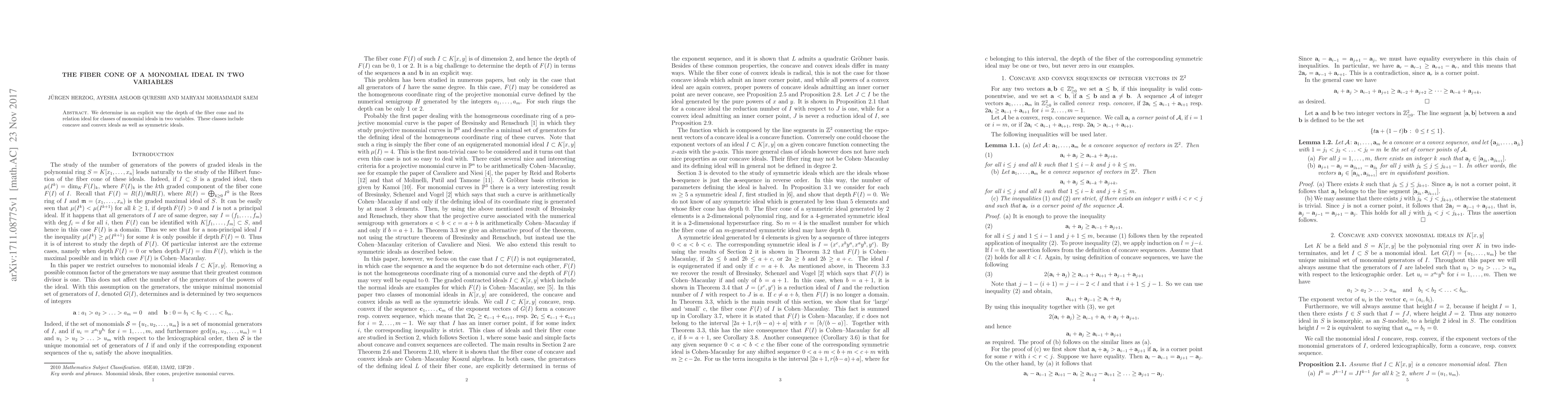 We determine in an explicit way the depth of the fiber cone and its relation ideal for classes of monomial ideals in two variables. These classes include concave and convex ideals as well as symmetric ideals.