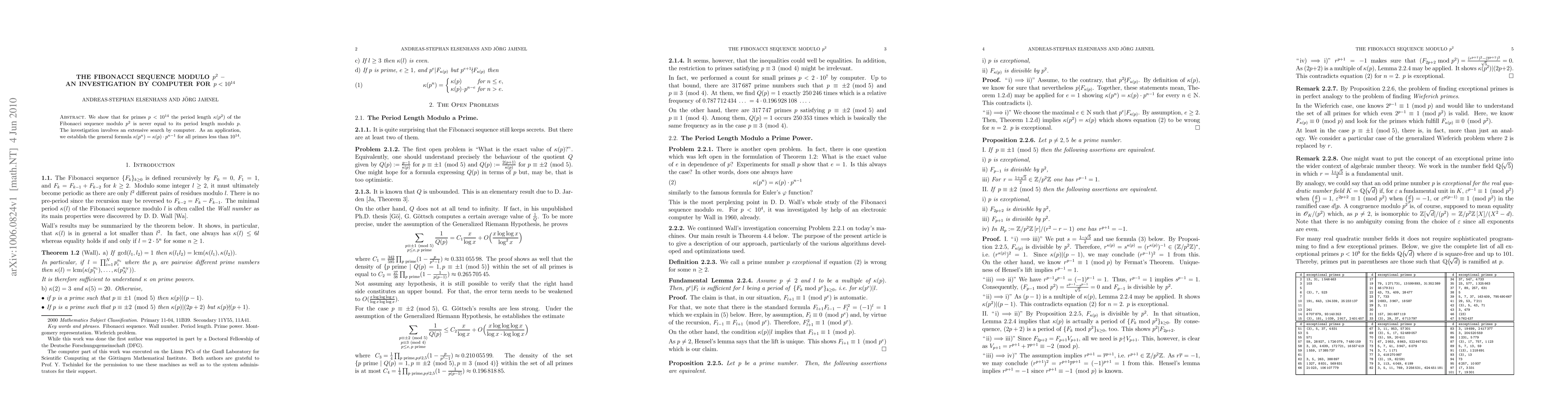 This paper investigates the period length of the Fibonacci sequence modulo $p^2$ for primes $p < 10^{14}$, revealing that $\kappa(p^2)$ never equals $\kappa(p)$. It also establishes the general formula $\kappa(p^n) = \kappa(p) \cdot p^{n-1}$ for these primes.