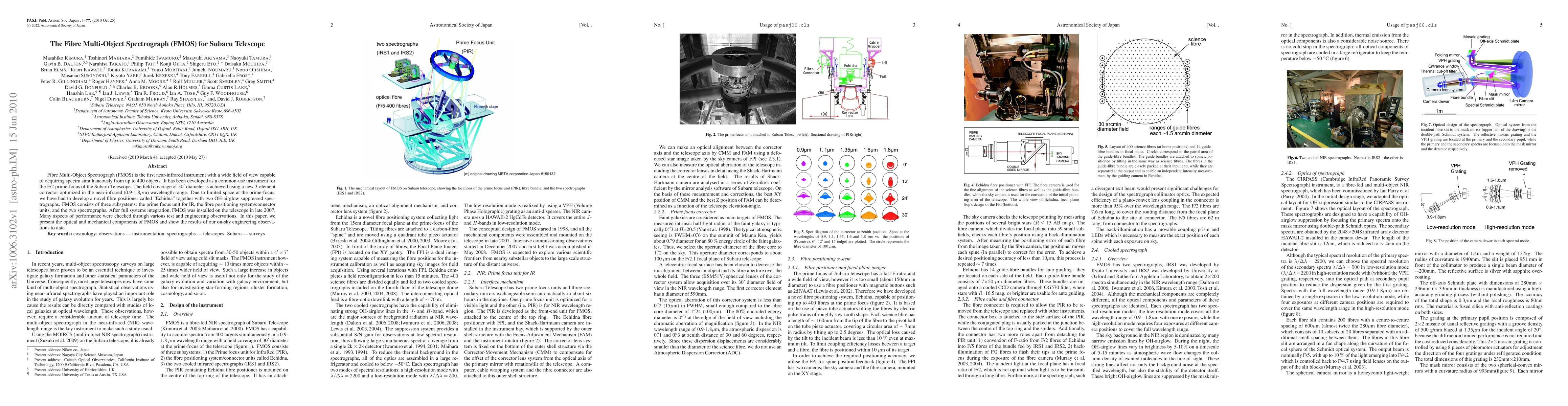 The Fibre Multi-Object Spectrograph (FMOS) is a near-infrared instrument for the Subaru Telescope, designed to simultaneously acquire spectra from up to 400 objects using a wide field of view and a novel fibre positioner. Its performance was validated through on-sky engineering observations.