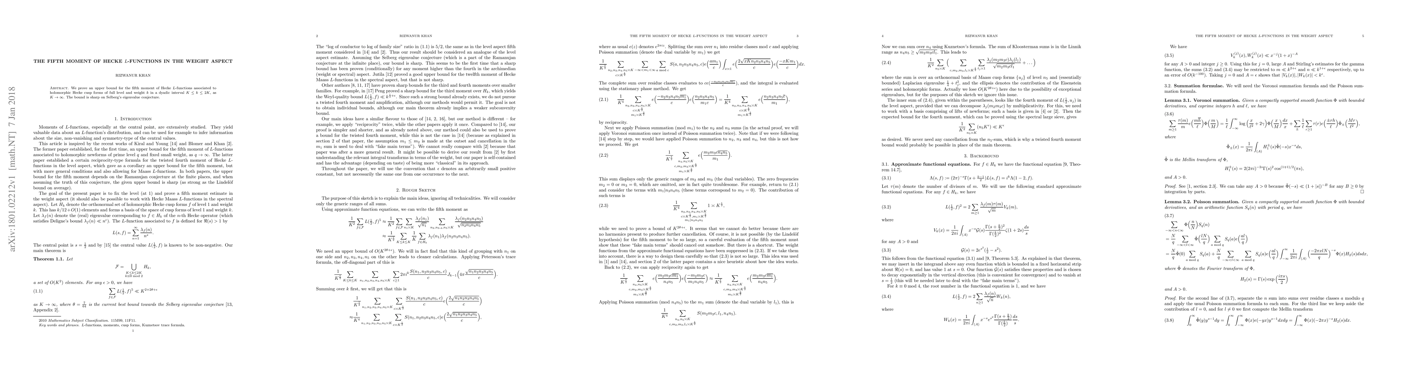 The paper presents a detailed analysis of the fifth moment of Hecke L-functions, employing advanced techniques from analytic number theory, including Voronoï summation, reciprocity relations, and Kuznetsov's formula.