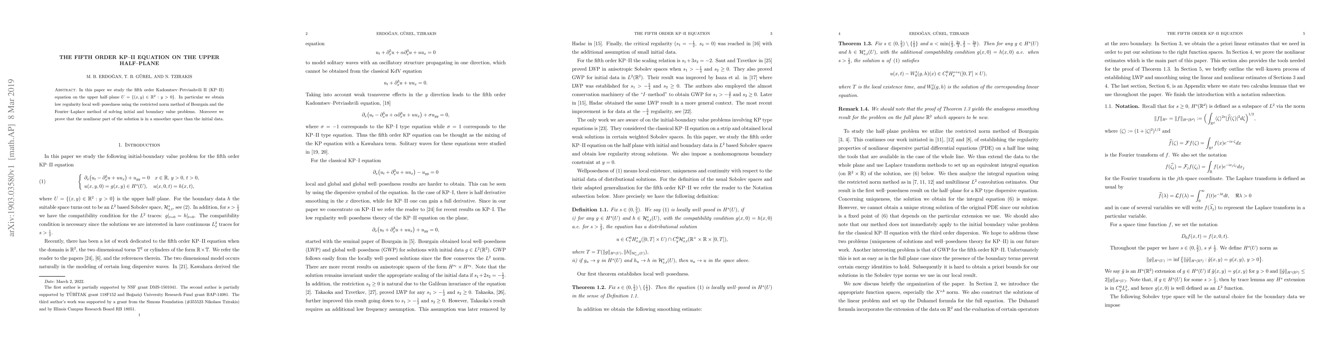 This paper investigates the fifth order KP-II equation on the upper half-plane, achieving local well-posedness in low regularity via Bourgain's restricted norm method and Fourier-Laplace techniques. It demonstrates that the solution's nonlinear part is smoother than the initial data.