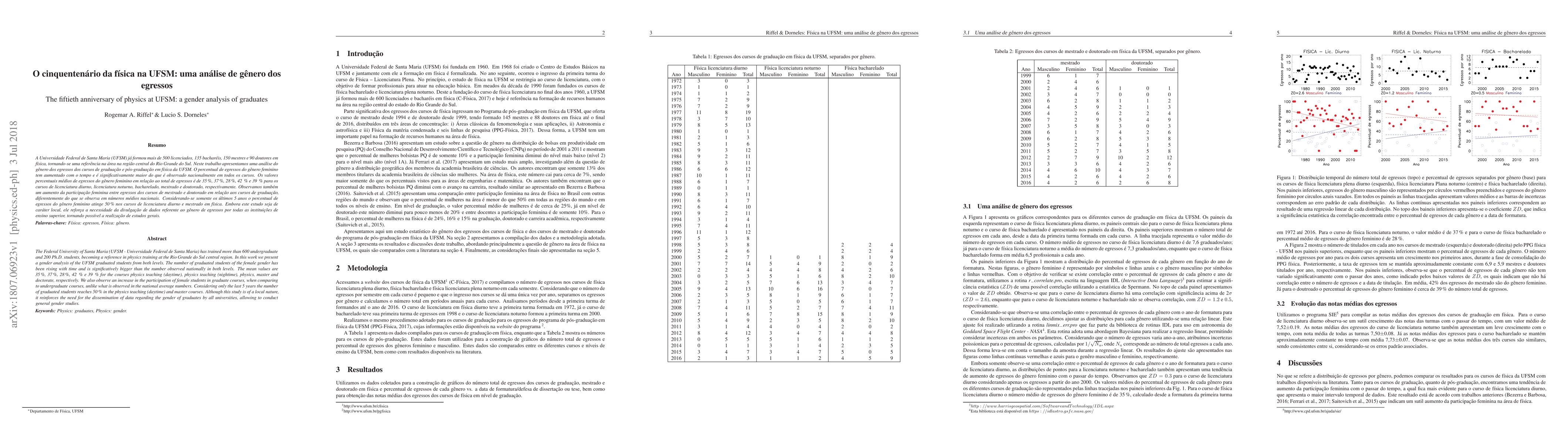 This study analyzes gender trends among UFSM physics graduates, revealing a rising number of female graduates, particularly in graduate programs, exceeding national averages. The findings highlight the university's success in increasing female participation and underscore the importance of gender data dissemination for broader gender studies.