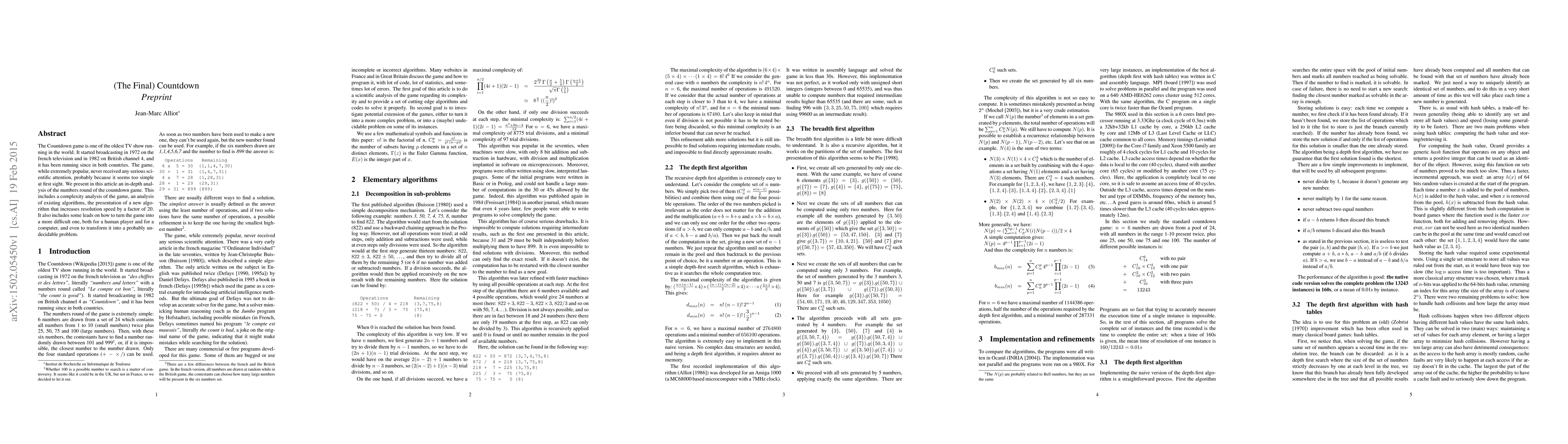 This paper provides an in-depth analysis of the numbers round in the popular game show Countdown, introducing a new algorithm that enhances resolution speed by 20 times. It also explores ways to increase the game's complexity for both human and computer players, potentially transforming it into an undecidable problem.