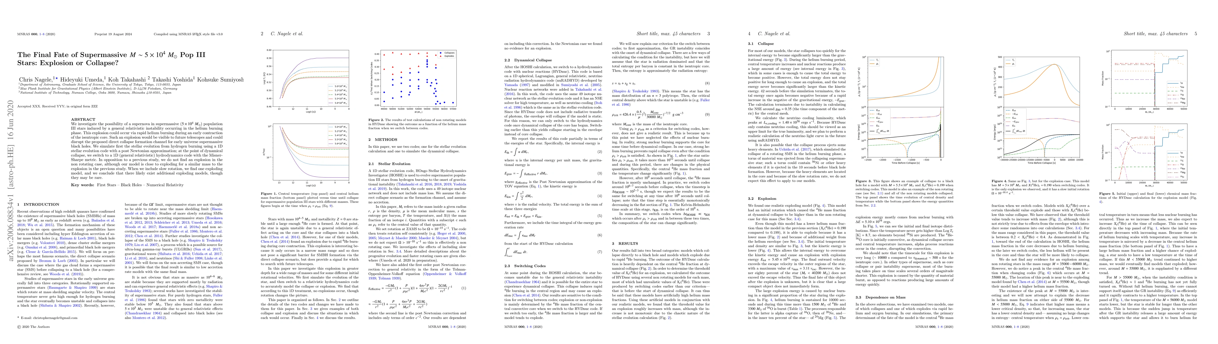 This paper explores the final fate of supermassive Pop III stars with masses around $5 \times 10^4 \; M_\odot$, finding no supernova in non-rotating models but one in slowly rotating models, suggesting rare explosive outcomes.