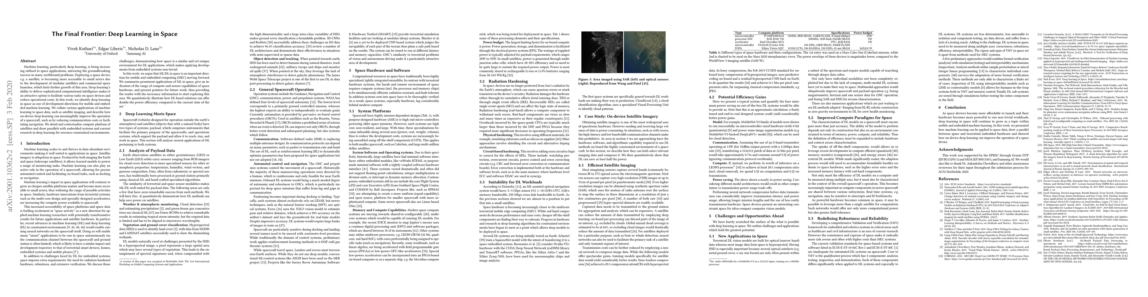 Deep learning is being increasingly used in space applications to improve spacecraft operations and reduce costs. The study explores its potential for on-device deep learning in satellites, drawing parallels with resource-constrained environments.