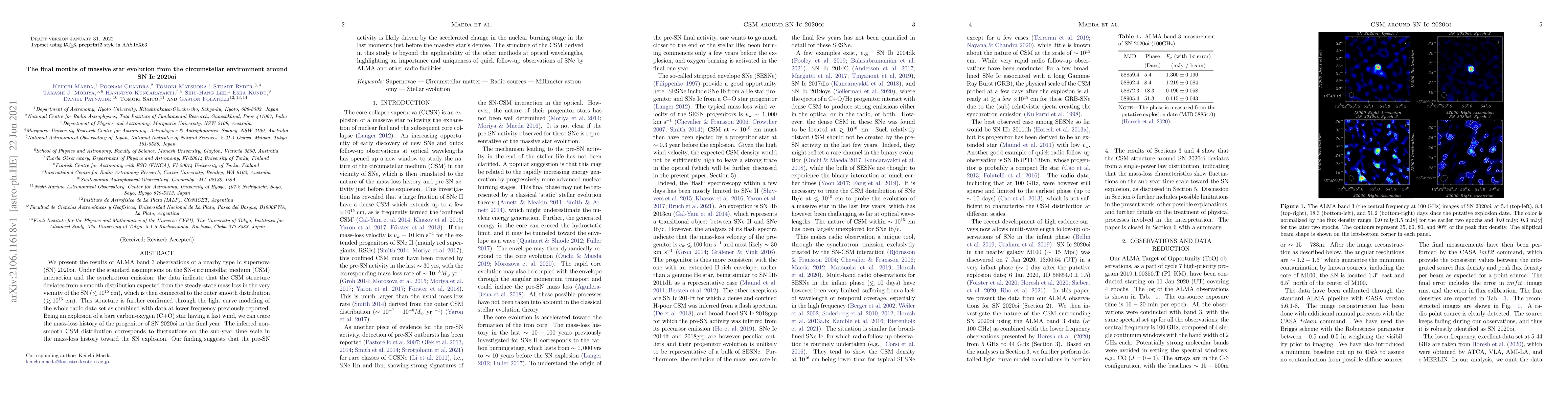 We present the results of ALMA band 3 observations of a nearby type Ic supernova (SN) 2020oi. Under the standard assumptions on the SN-circumstellar medium (CSM) interaction and the synchrotron emission, the data indicate that the CSM structure deviates from a smooth distribution expected from the steady-state mass loss in the very vicinity of the SN (~10^{15} cm), which is then connected to the outer smooth distribution (~10^{16} cm). This structure is further confirmed through the light curve modeling of the whole radio data set as combined with data at lower frequency previously reported. Being an explosion of a bare carbon-oxygen (C+O) star having a fast wind, we can trace the mass-loss history of the progenitor of SN 2020oi in the final year. The inferred non-smooth CSM distribution corresponds to fluctuations on the sub-year time scale in the mass-loss history toward the SN explosion. Our finding suggests that the pre-SN activity is likely driven by the accelerated change in the nuclear burning stage in the last moments just before the massive star's demise. The structure of the CSM derived in this study is beyond the applicability of the other methods at optical wavelengths, highlighting an importance and uniqueness of quick follow-up observations of SNe by ALMA and other radio facilities.