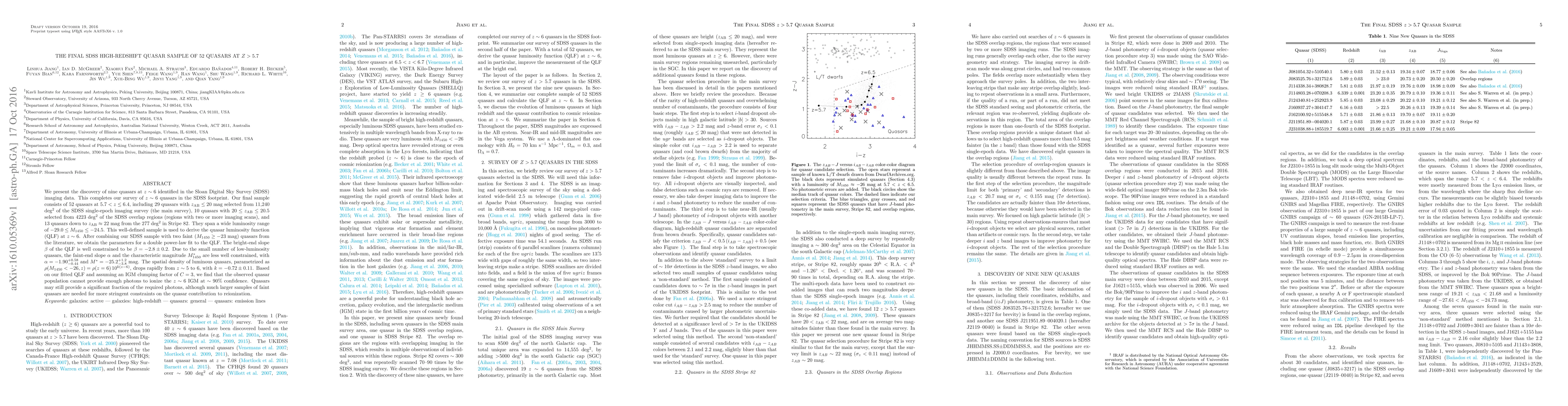 A team has discovered 52 quasars at redshifts above 5.7, completing a survey of high-redshift quasars, and used them to study the luminosity function of quasars at z~6, finding that they may not be able to provide enough photons for IGM reionization.