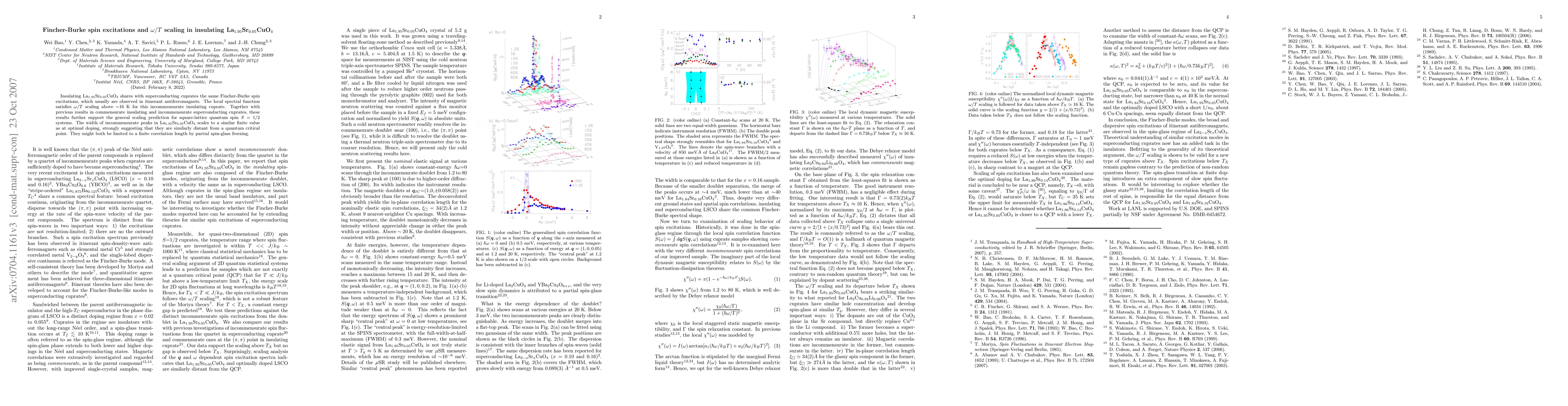 Insulating La1.95Sr0.05CuO4 shares with superconducting cuprates the same Fincher-Burke-like spin excitations, which usually are observed in itinerant antiferromagnets. The local spectral function satisfies omega/T scaling above ~16 K for this incommensurate insulating cuprate. Together with previous results in commensurate insulating and incommensurate superconducting cuprates, these results further support the general scaling prediction for square-lattice quantum spin S=1/2 systems. The width of incommensurate peaks in La1.95Sr0.05CuO4 scales to a similar finite value as at optimal doping, strongly suggesting that they are similarly distant from a quantum critical point. They might both be limited to a finite correlation length by the partial spin-glass freezing.