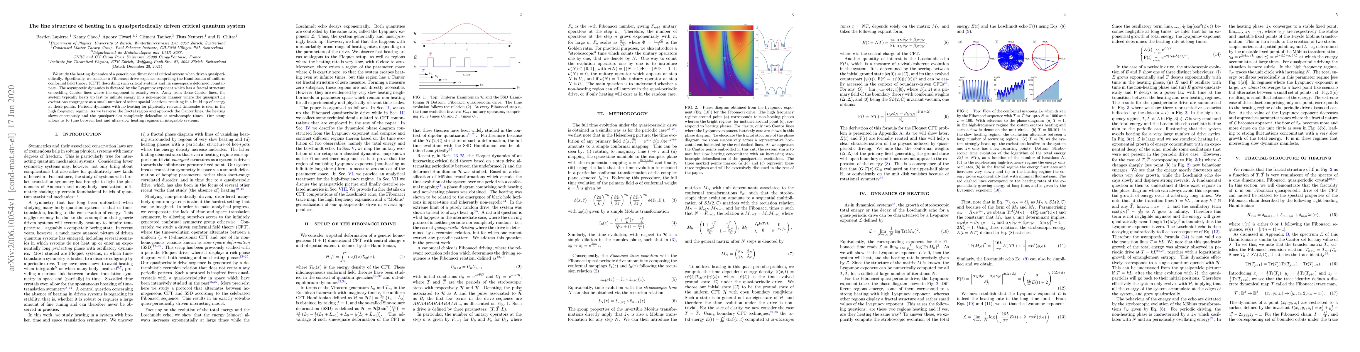 This paper investigates the heating dynamics in a one-dimensional critical quantum system under quasiperiodic Fibonacci drive, revealing a fractal structure in the Lyapunov exponent. The system heats rapidly away from Cantor lines, while periodic dynamics occur at high frequencies, and ultra-slow heating emerges near Cantor lines where quasiparticles delocalize.