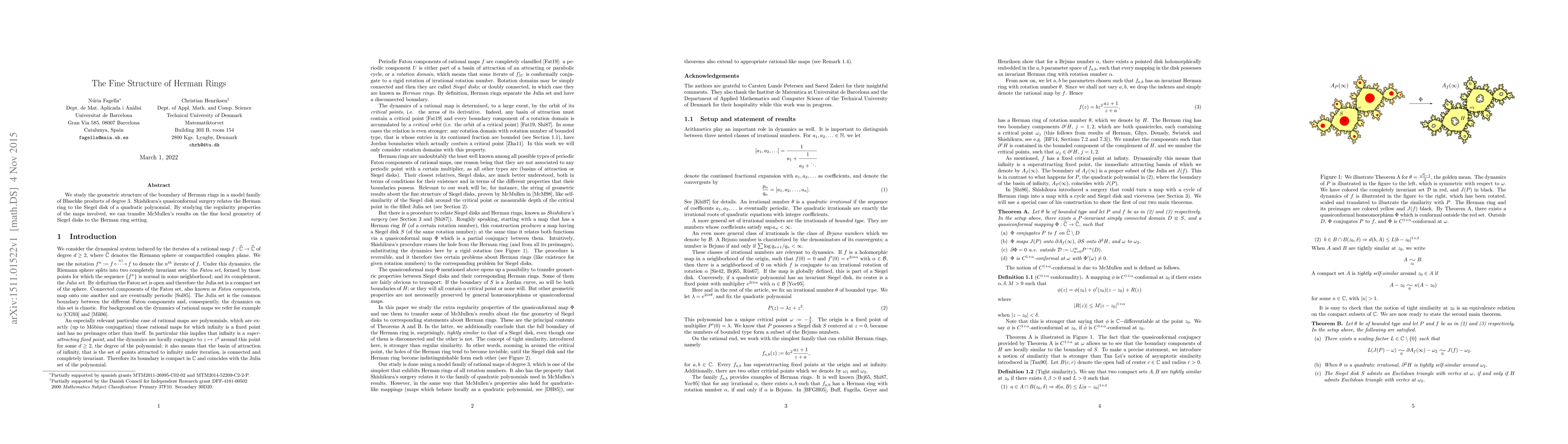 The novelty lies in the application of quasiconformal surgery to connect Herman rings and Siegel disks, and in extending McMullen's results on Siegel disks to Herman rings through regularity properties of involved maps.
