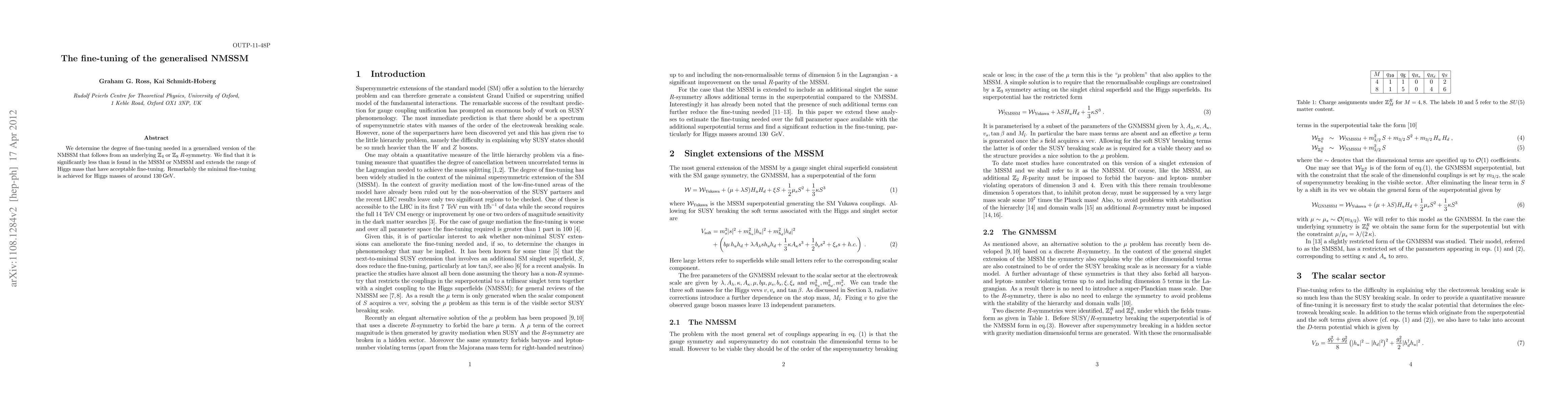 This paper investigates the fine-tuning required in a generalised NMSSM with Z4 or Z8 R-symmetry, finding significantly lower fine-tuning compared to the MSSM and NMSSM, with minimal fine-tuning occurring around a 130 GeV Higgs mass.