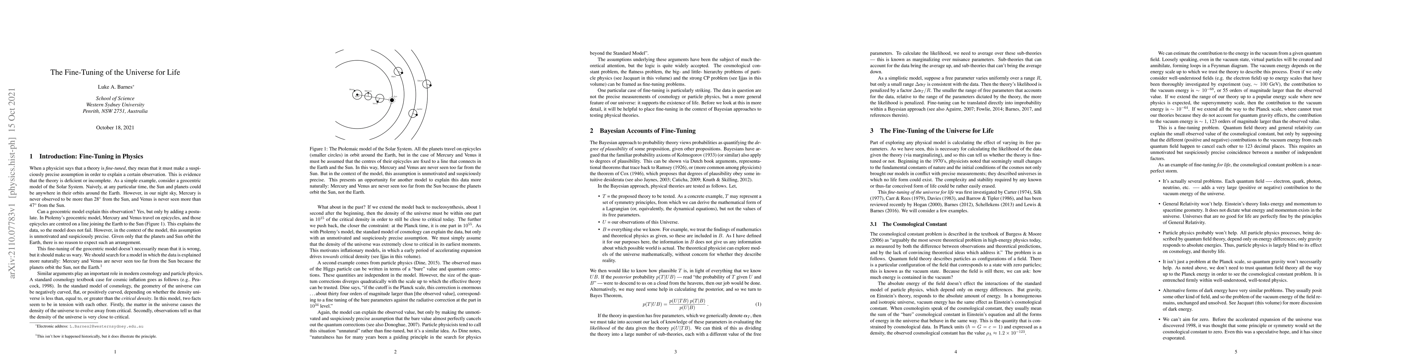 This paper explores the concept of fine-tuning in the universe, emphasizing how certain conditions must be precisely set to allow for life, suggesting that the universe's parameters are suspiciously well-suited for supporting life, indicating potential incompleteness in current scientific theories.