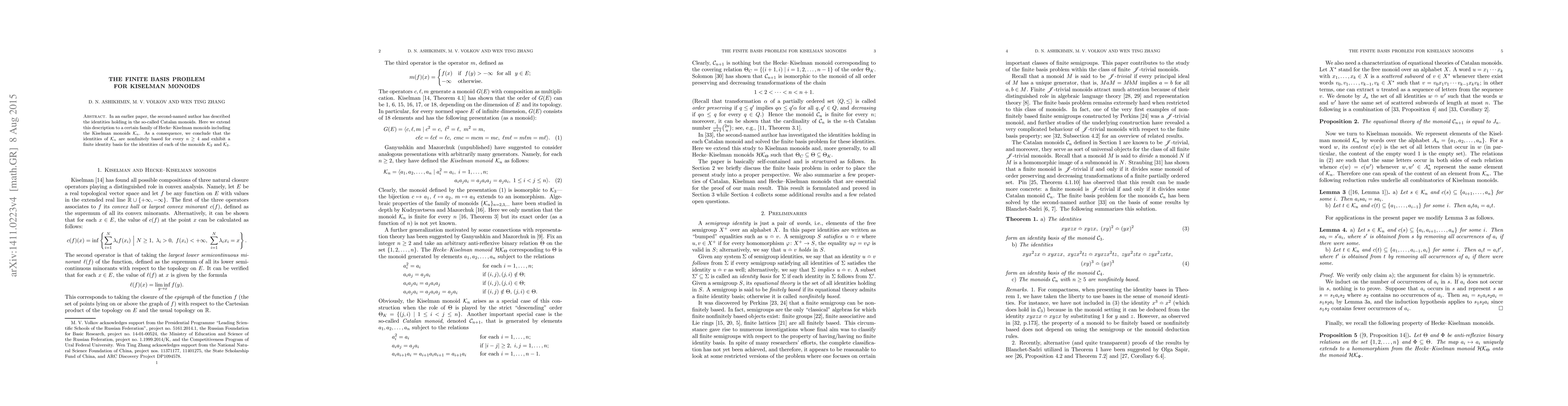 This paper extends the study of identities in Catalan monoids to Kiselman monoids $\mathcal{K}_n$, showing that $\mathcal{K}_n$ has a finite identity basis for $n=2$ and $3$, but is nonfinitely based for $n\ge 4$. A question from the initial submission has also been resolved.