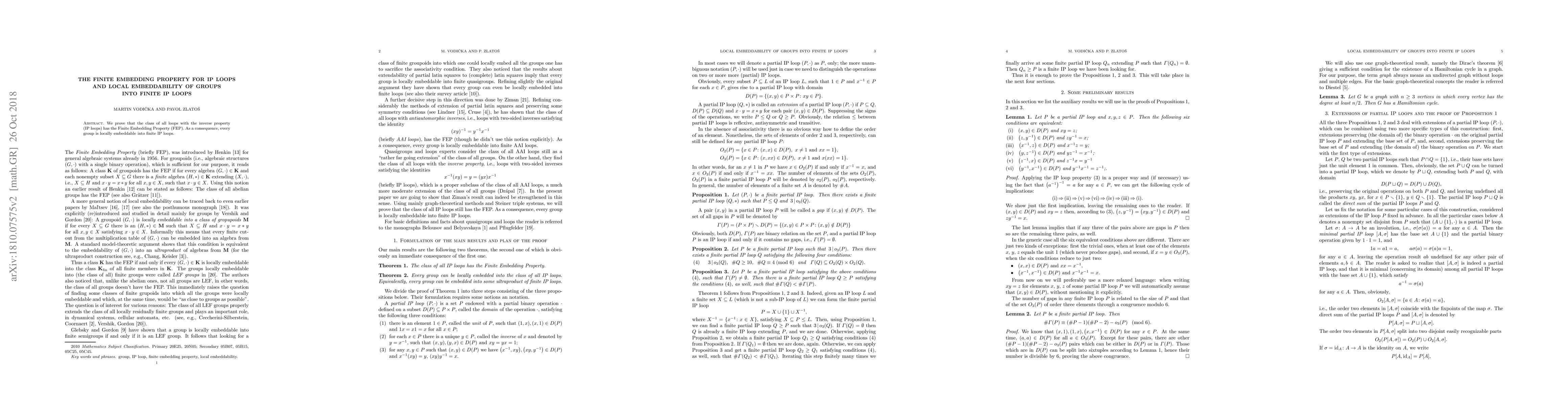 Researchers prove that loops with inverse property have the Finite Embedding Property, showing every group can be locally embedded into finite IP loops.