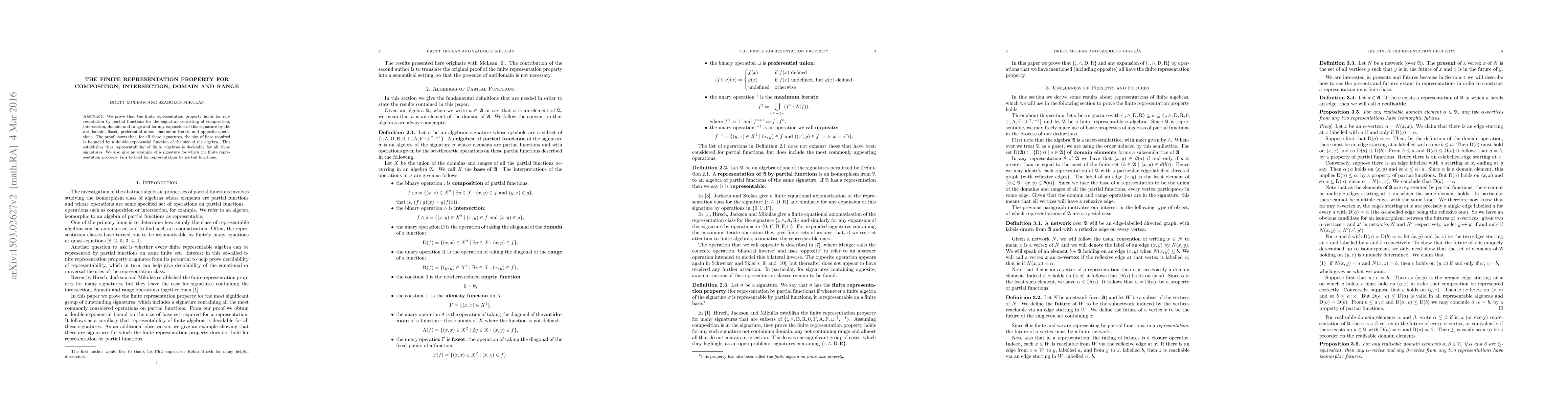 This paper proves the finite representation property for various algebraic operations, showing that finite algebras can be represented by partial functions with a double-exponential size bound. It establishes decidability for representability in these signatures, while also identifying a signature where the property does not hold.