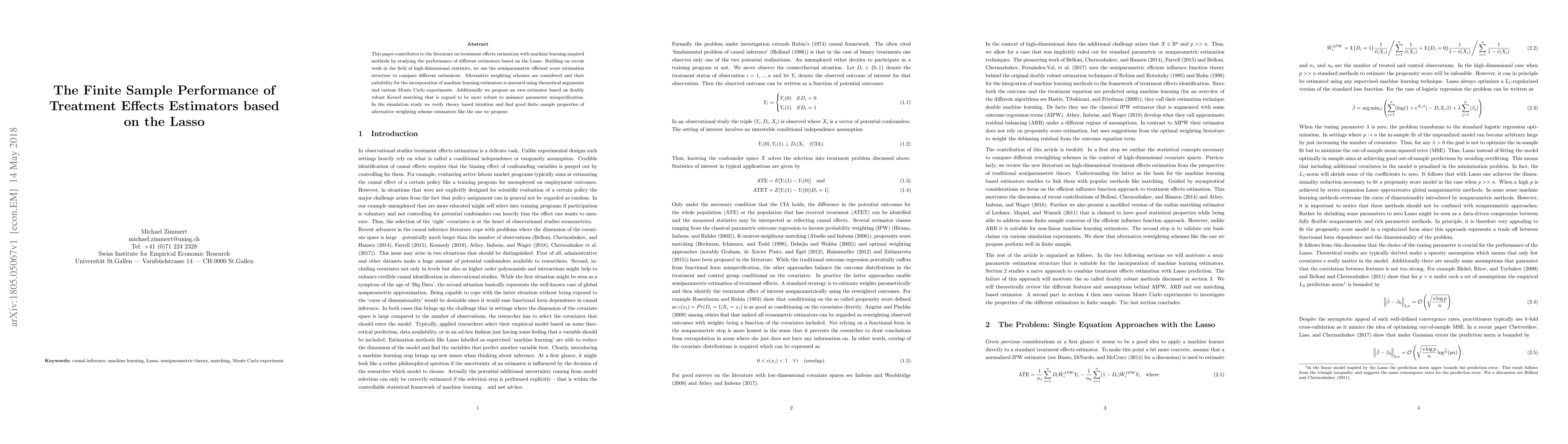 This paper investigates the performance of treatment effects estimators using Lasso-based methods, proposing a new estimator that offers robustness to nuisance parameter misspecification and good finite sample properties in simulations.