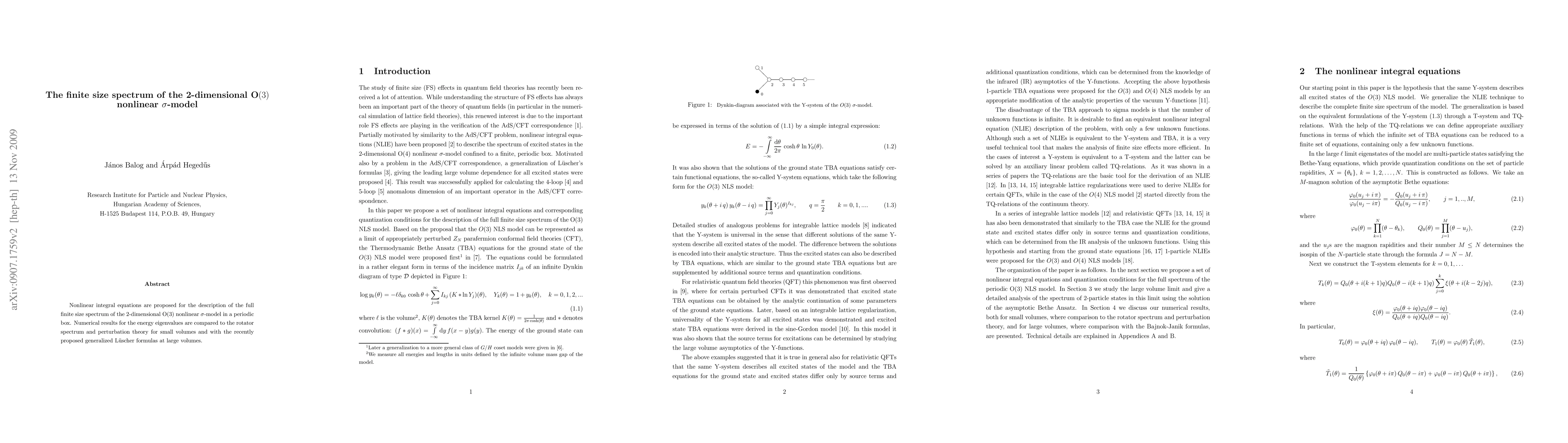 This paper proposes nonlinear integral equations to describe the finite size spectrum of the 2-dimensional O(3) nonlinear sigma-model, comparing numerical results with the rotator spectrum, perturbation theory, and generalized Lüscher formulas.