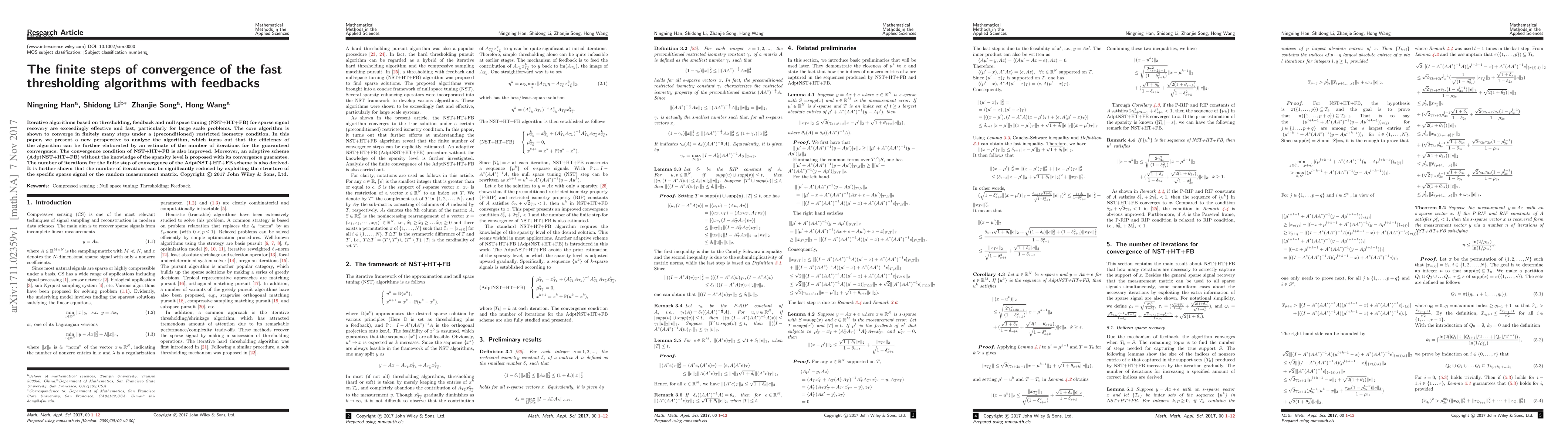 This paper analyzes fast thresholding algorithms with feedback for sparse signal recovery, demonstrating that the algorithm converges in a finite number of steps under specific conditions. It introduces an adaptive scheme that guarantees convergence without prior knowledge of sparsity, and derives the number of iterations required for convergence, showing potential for significant reduction through signal or measurement structure exploitation.