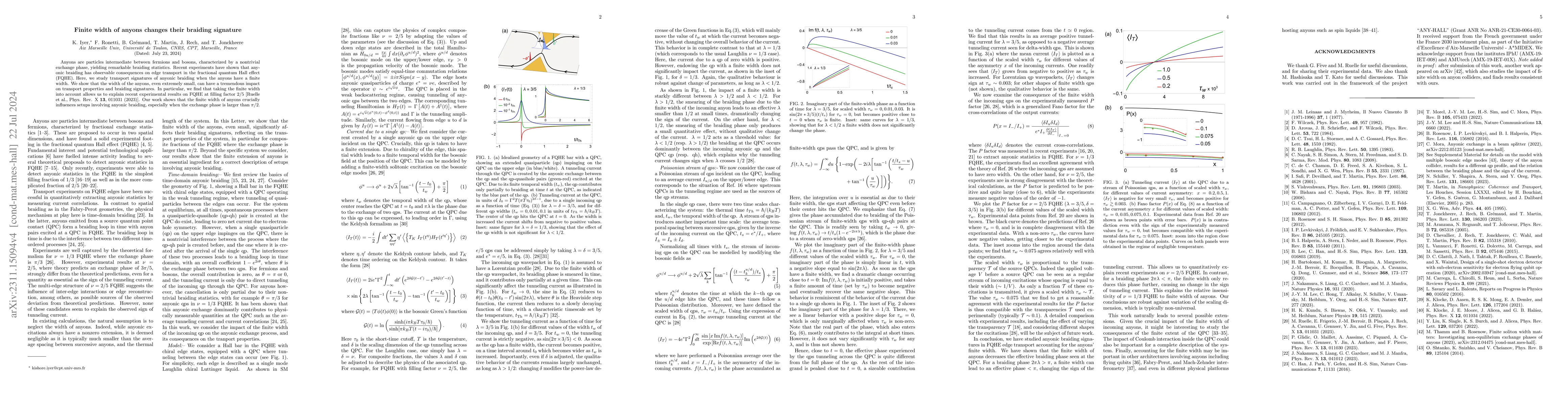 Anyons are particles intermediate between fermions and bosons, characterized by a nontrivial exchange phase, yielding remarkable braiding statistics. Recent experiments have shown that anyonic braiding has observable consequences on edge transport in the fractional quantum Hall effect (FQHE). Here, we study transport signatures of anyonic braiding when the anyons have a finite temporal width. We show that the width of the anyons, even extremely small, can have a tremendous impact on transport properties and braiding signatures. In particular, we find that taking the finite width into account allows us to explain recent experimental results on FQHE at filling factor $2/5$ [Ruelle et al., Phys. Rev. X $\mathbf{13}$, 011031 (2023)]. Our work shows that the finite width of anyons crucially influences setups involving anyonic braiding, especially for composite fractions where the exchange phase is larger than $\pi/2$.