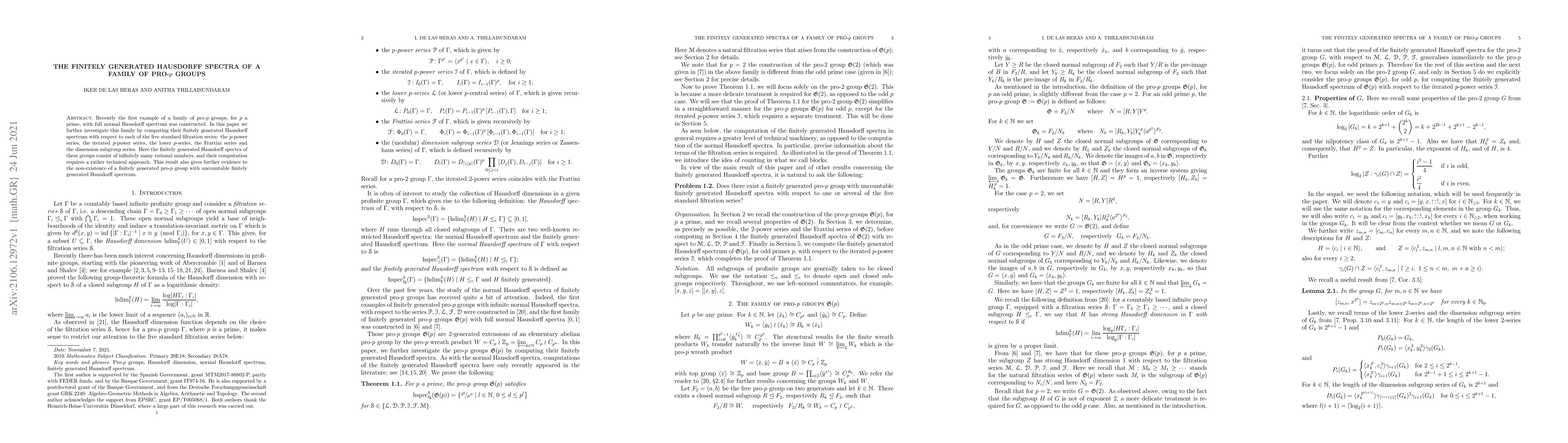 This paper investigates a family of pro-$p$ groups, analyzing their finitely generated Hausdorff spectra through five standard filtration series, revealing infinitely many rational numbers. This study supports the non-existence of finitely generated pro-$p$ groups with uncountable Hausdorff spectra.
