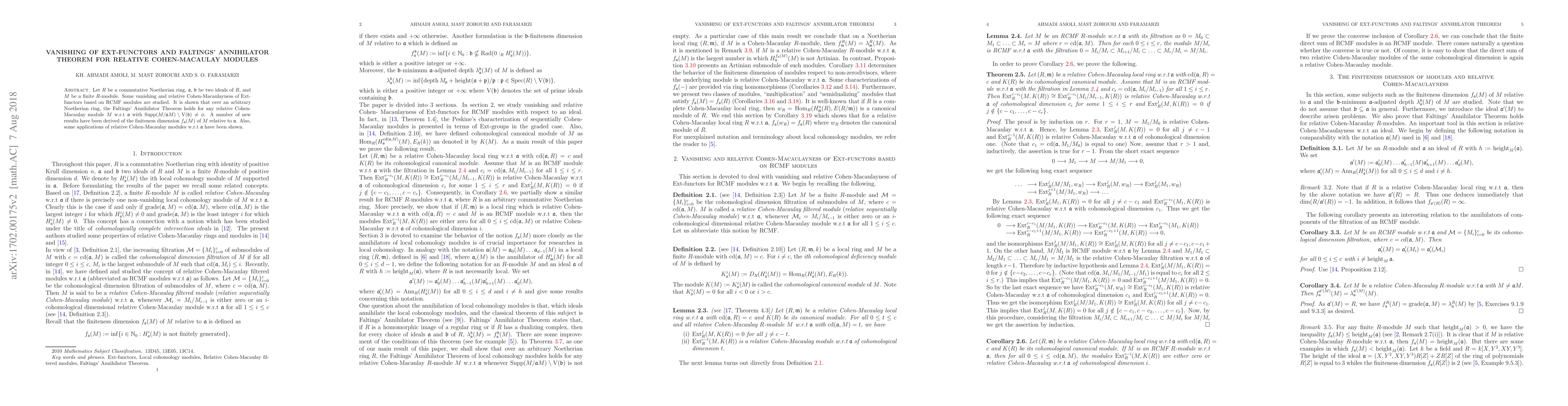 Let $R$ be a commutative Noetherian ring, $\mathfrak a$ and $\mathfrak b$ ideals of $R$. In this paper, we study the finiteness dimension $f_{\mathfrak a}(M)$ of $M$ relative to $\mathfrak a$ and the $\mathfrak b$-minimum $\mathfrak a$-adjusted depth $\lambda_{\mathfrak a}^{\mathfrak b}(M)$ of $M$, where the underlying module $M$ is relative Cohen-Macaulay w.r.t $\mathfrak a$. Some applications of such modules are given.