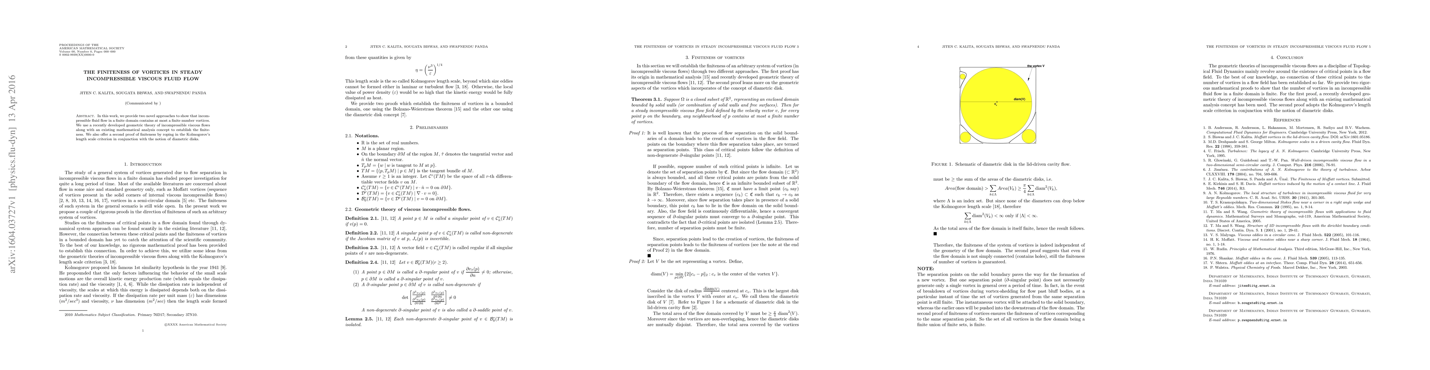This paper demonstrates that steady incompressible viscous fluid flow in a finite domain contains a finite number of vortices, using a geometric theory and mathematical analysis, and also provides a second proof utilizing Kolmogorov's length scale criterion and diametric disks.